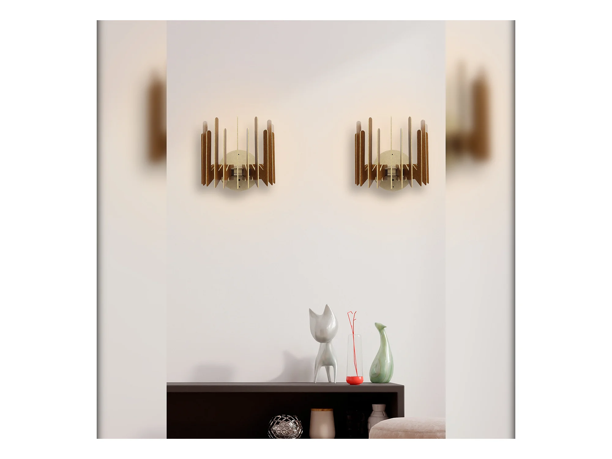 2 Applique Murale Interieur, Design En Bois Et En Mdf, Nogal 20x24x22 Cm