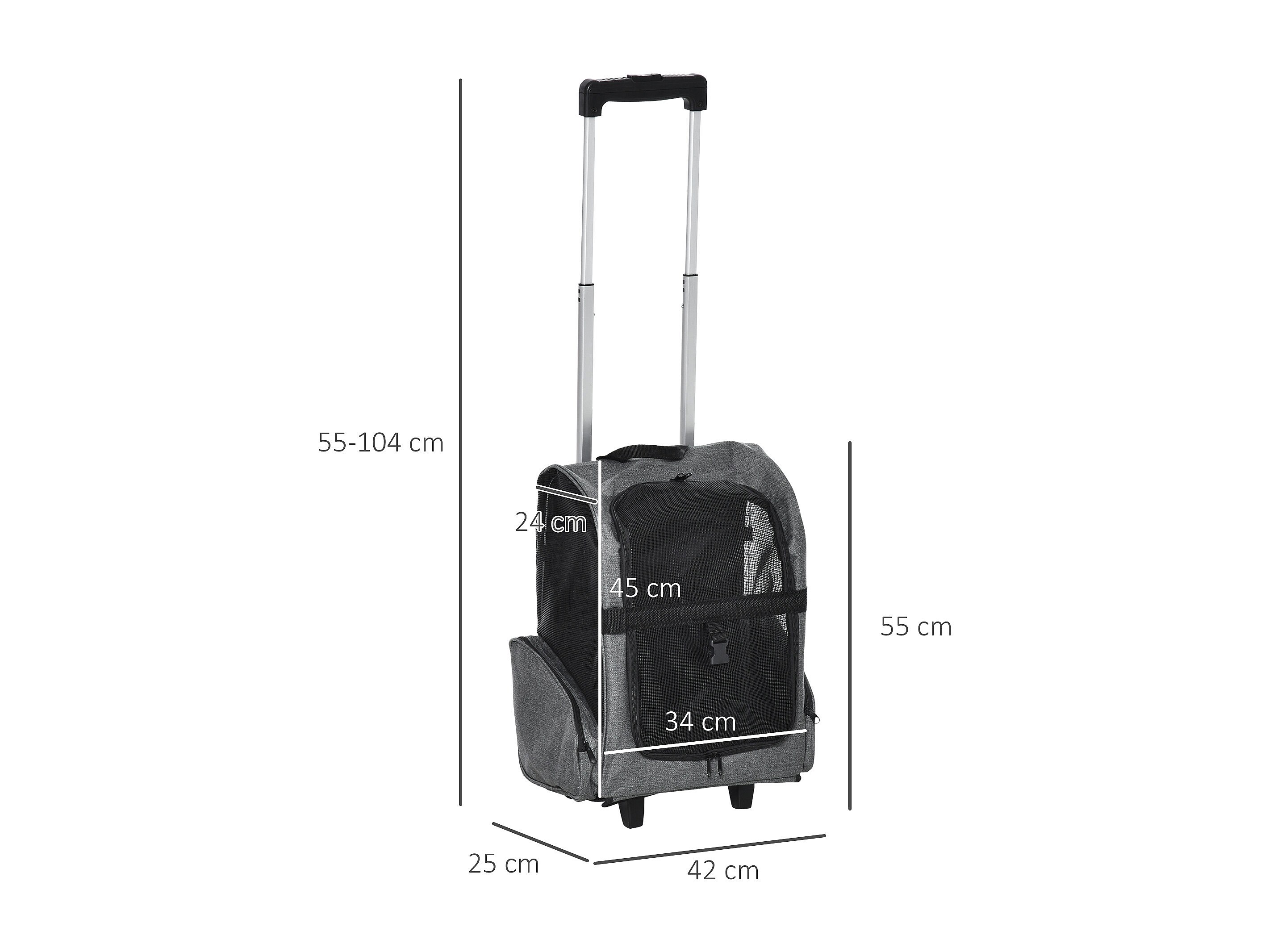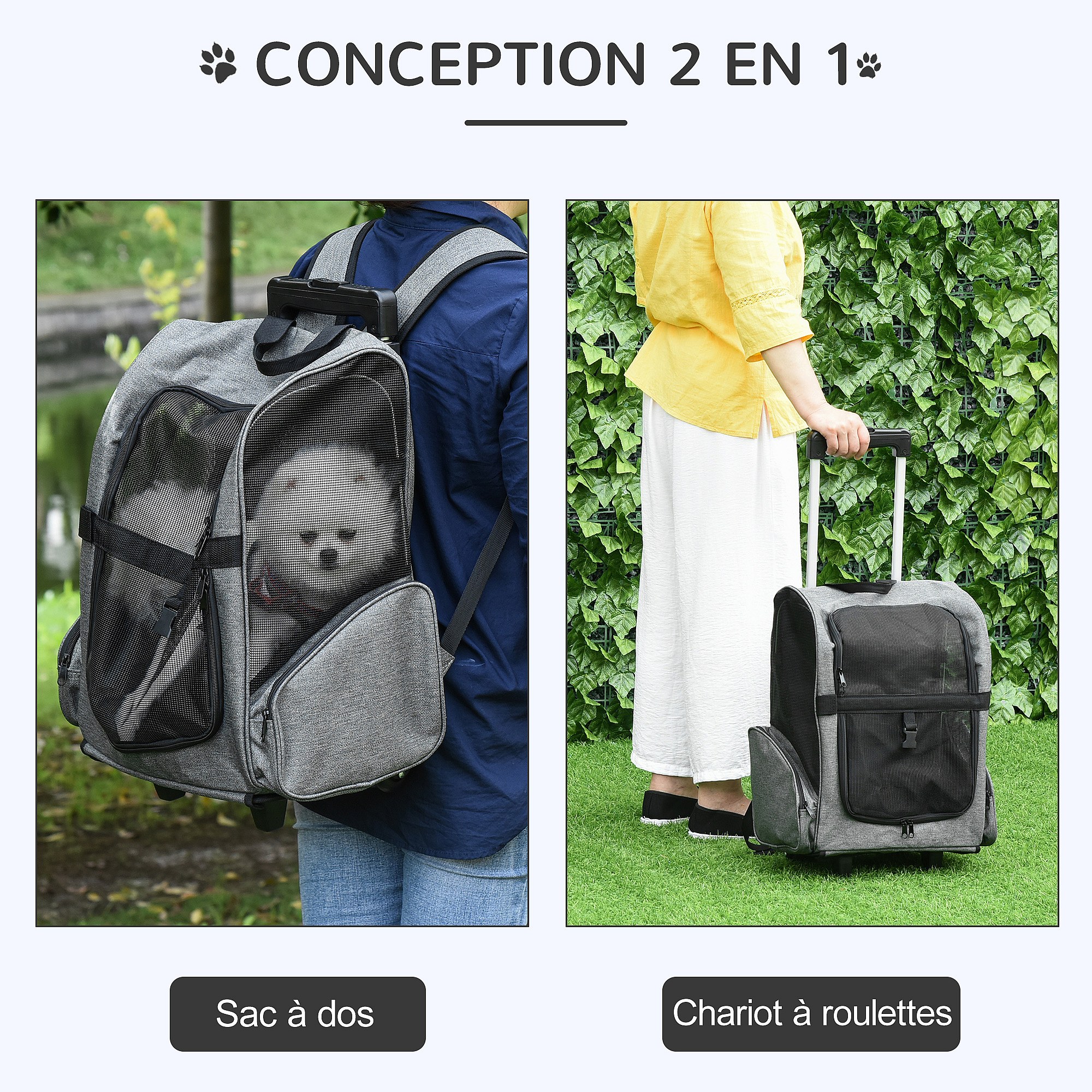 2 en 1 trolley chariot sac à dos sac de transport à roulettes pour chien chat gris