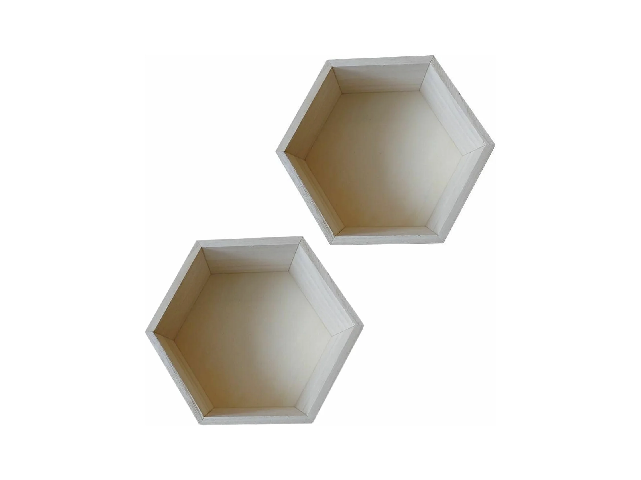 2 étagères hexagone en bois 24 x 21 x 10 cm