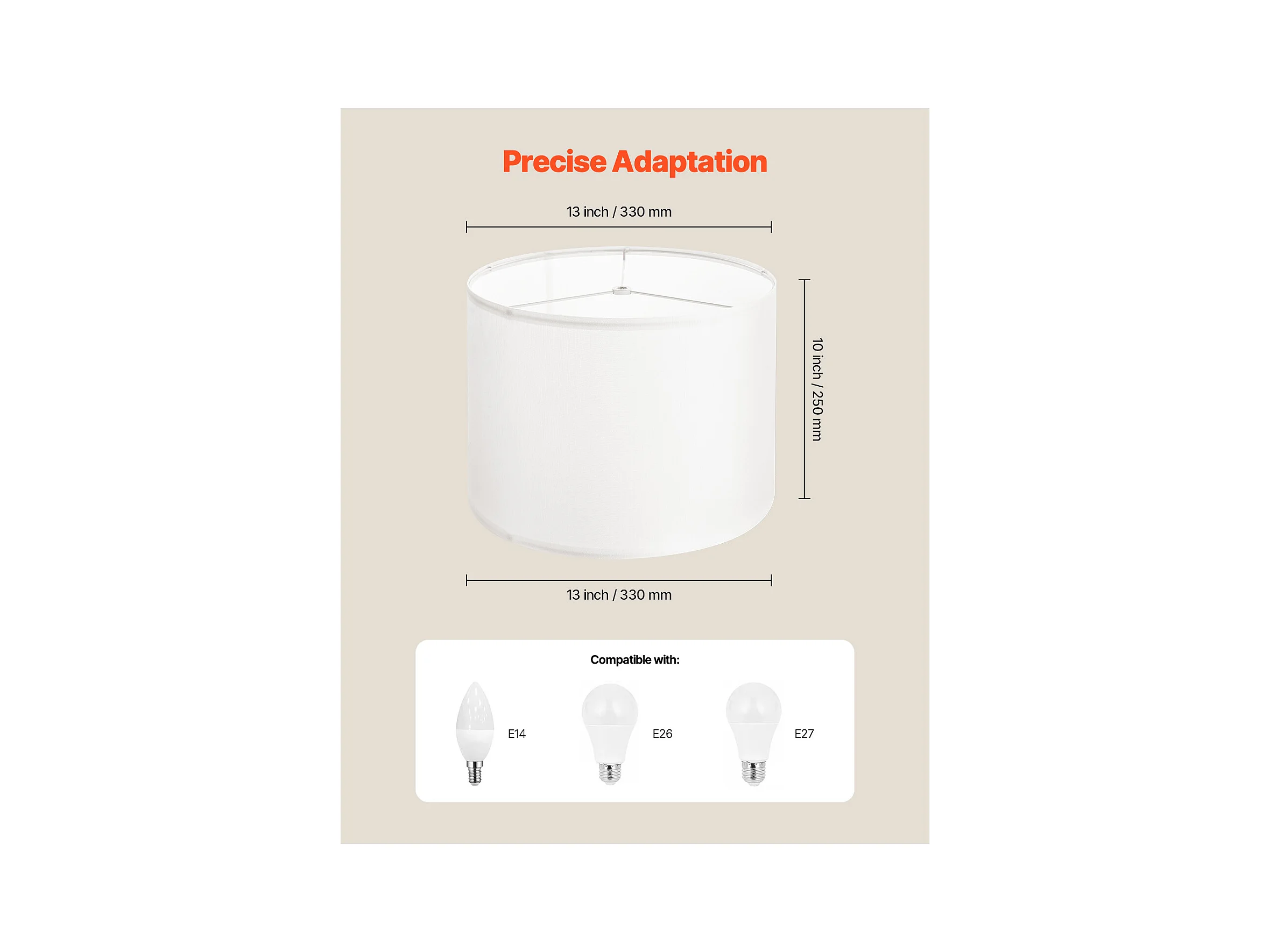 Abat-Jour Tambour SucceBuy, 2 Pcs, 33x33x25 cm, Abat-Jour de Remplacement Moyen en Lin pour Lampes de Table, Lampadaires et Suspensions, Lin Blanc Cassé