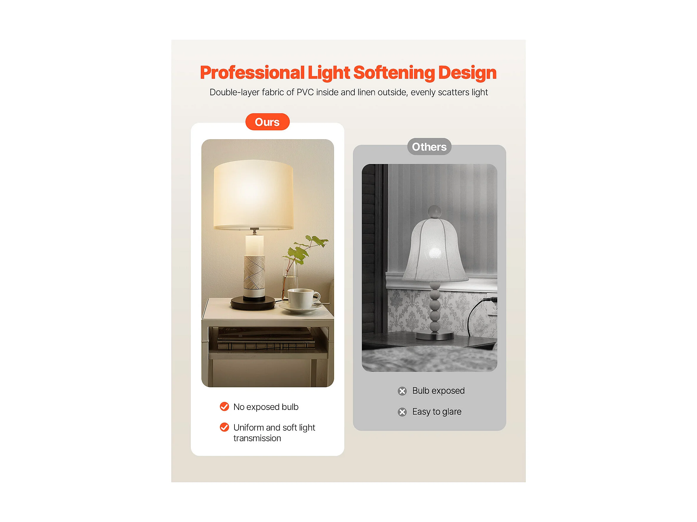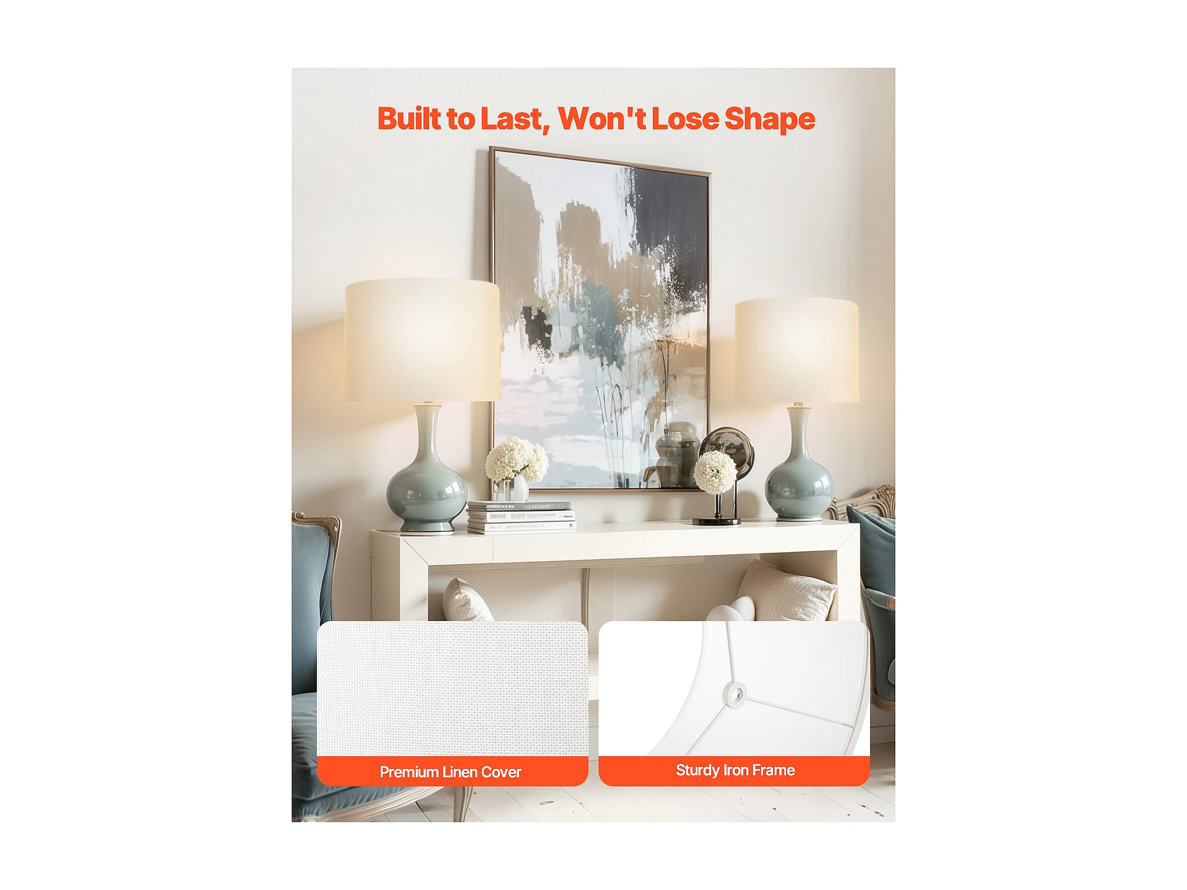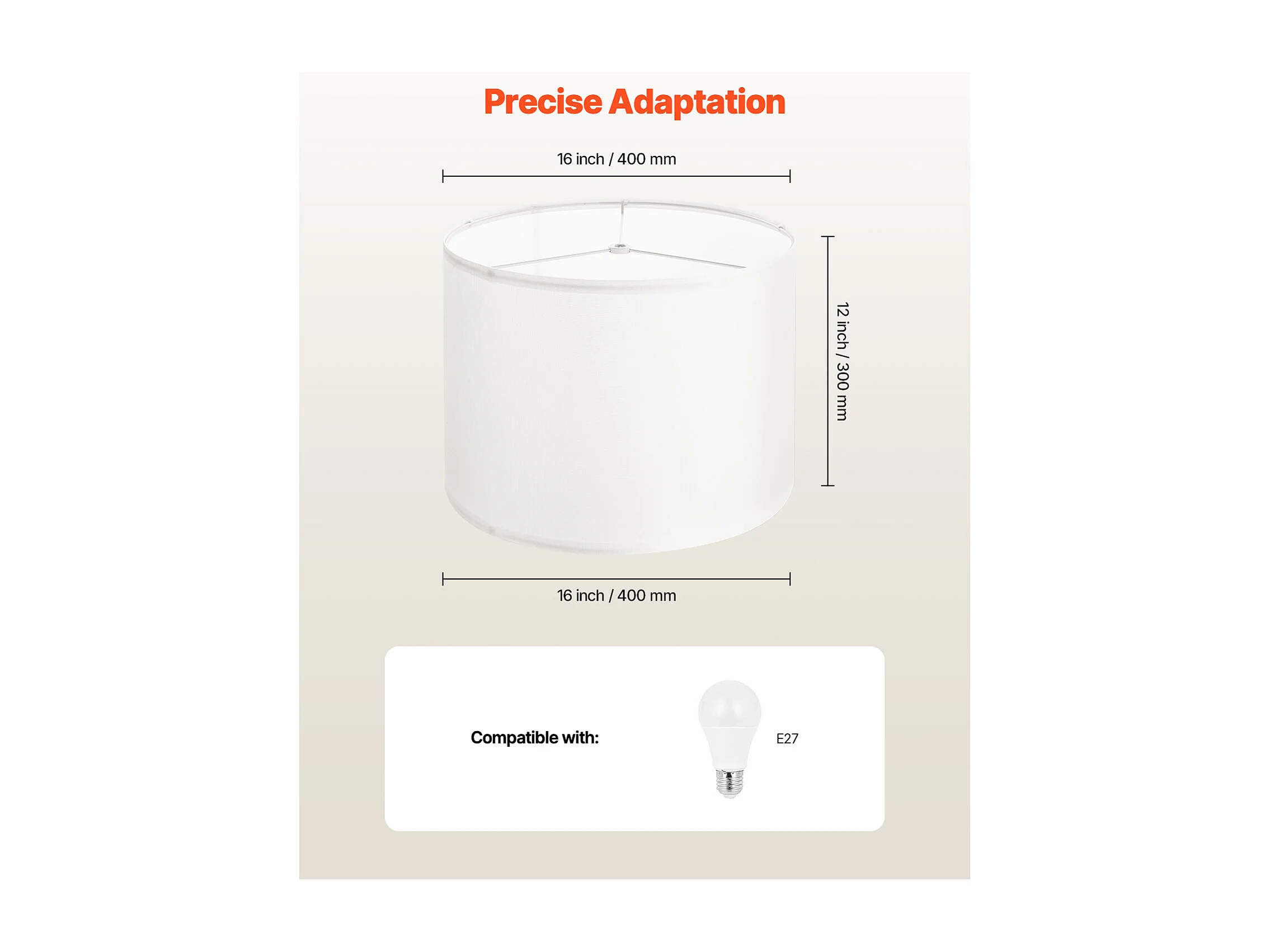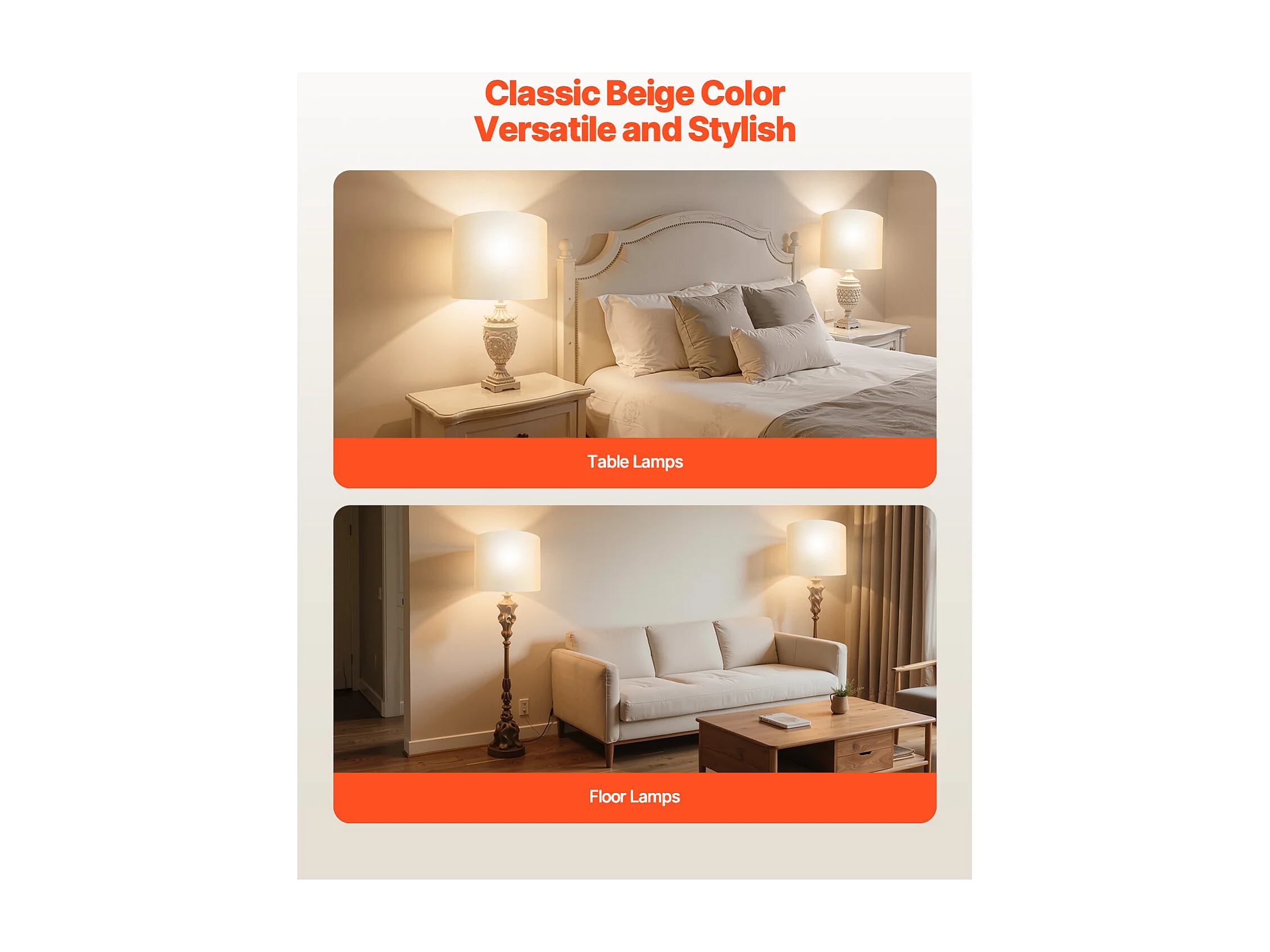 Abat-Jour Tambour SucceBuy, 2 Pcs, 33x33x25 cm, Abat-Jour Ronde de Remplacement Moyen en Lin pour Lampes de Table, Lampadaires et Suspensions, Lin Clair