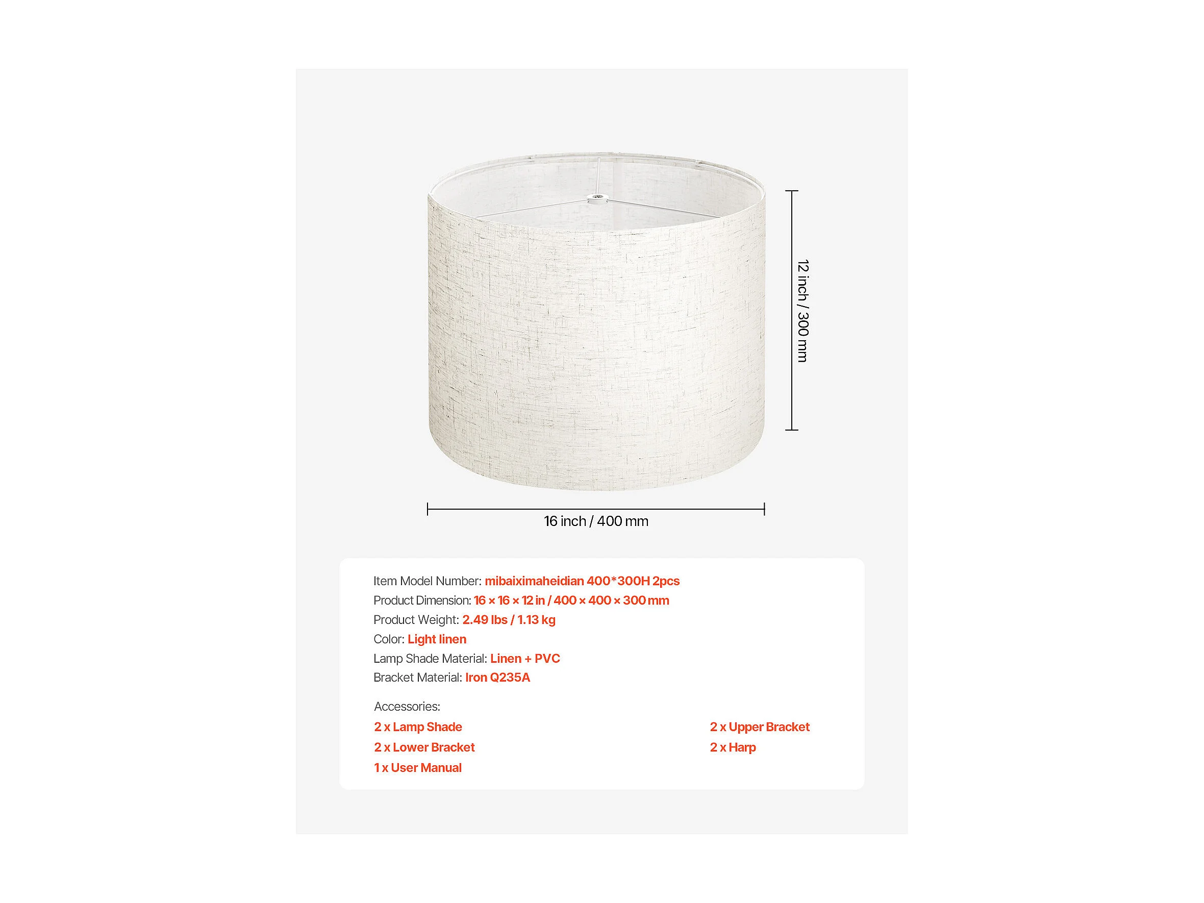 Abat-Jour Tambour SucceBuy, 2 Pcs, 33x33x25 cm, Abat-Jour Ronde de Remplacement Moyen en Lin pour Lampes de Table, Lampadaires et Suspensions, Lin Clair