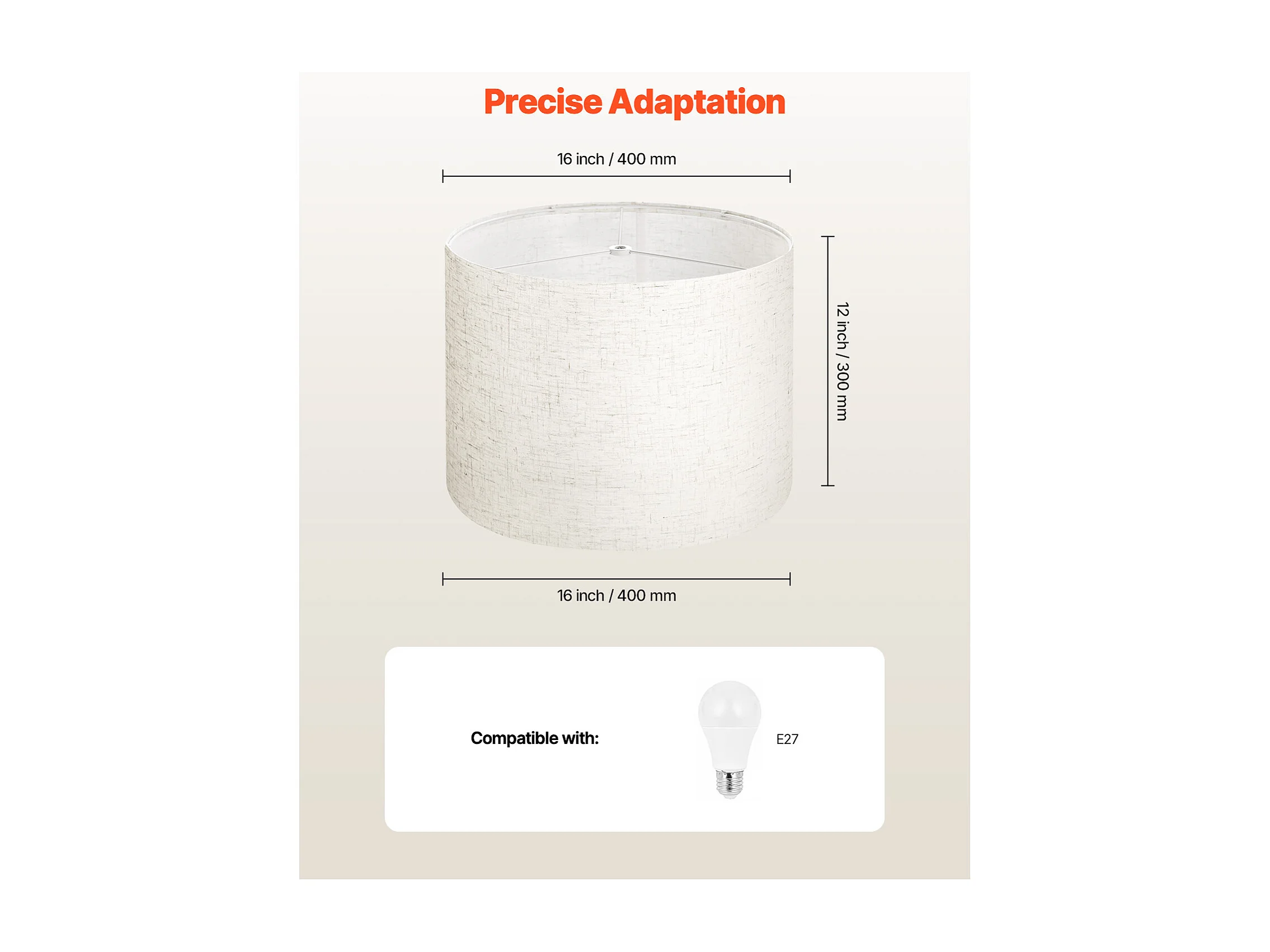 Abat-Jour Tambour SucceBuy, 2 Pcs, 33x33x25 cm, Abat-Jour de Remplacement Moyen en Lin pour Lampes de Table, Lampadaires et Suspensions, Lin Blanc Cassé