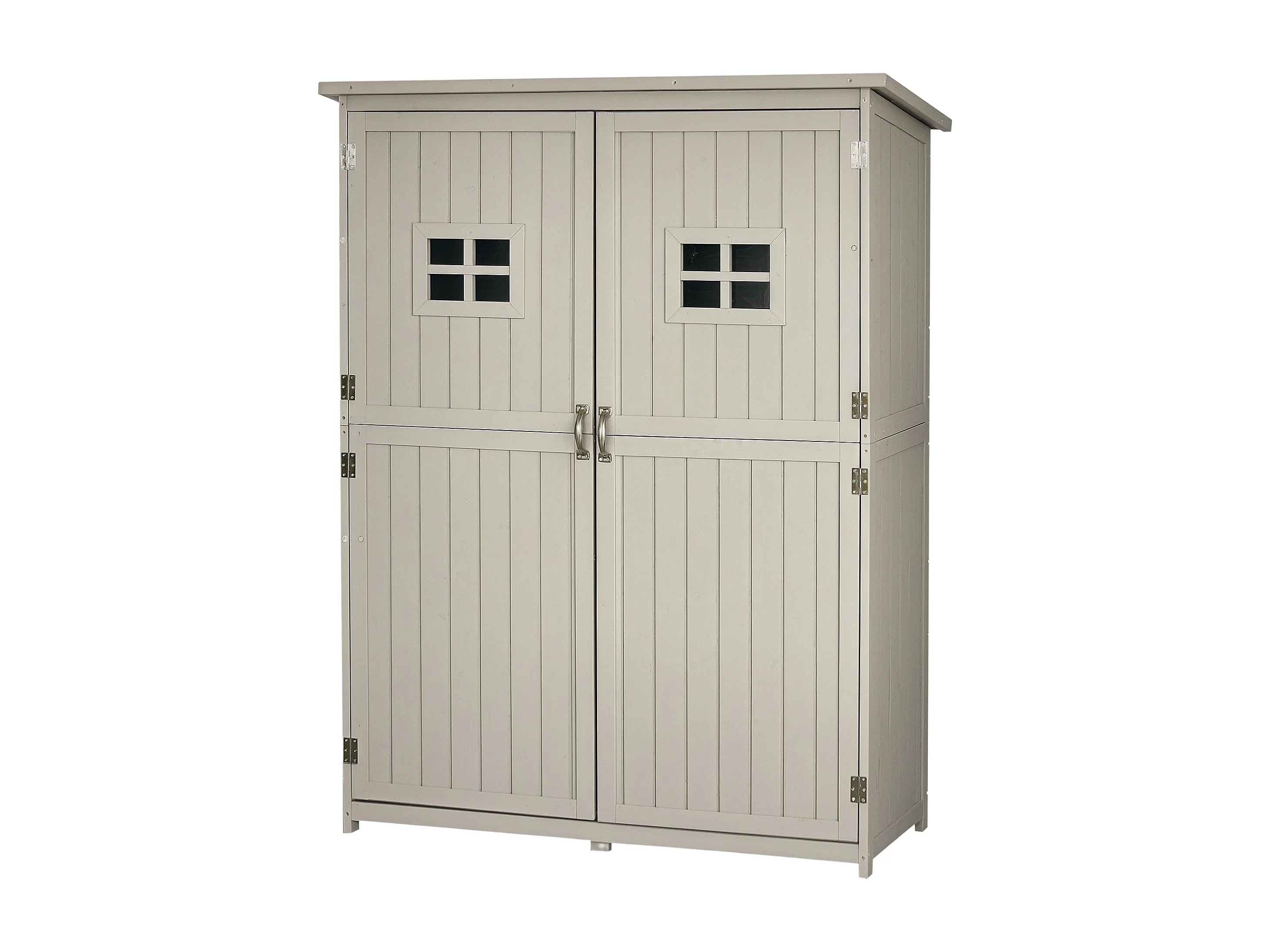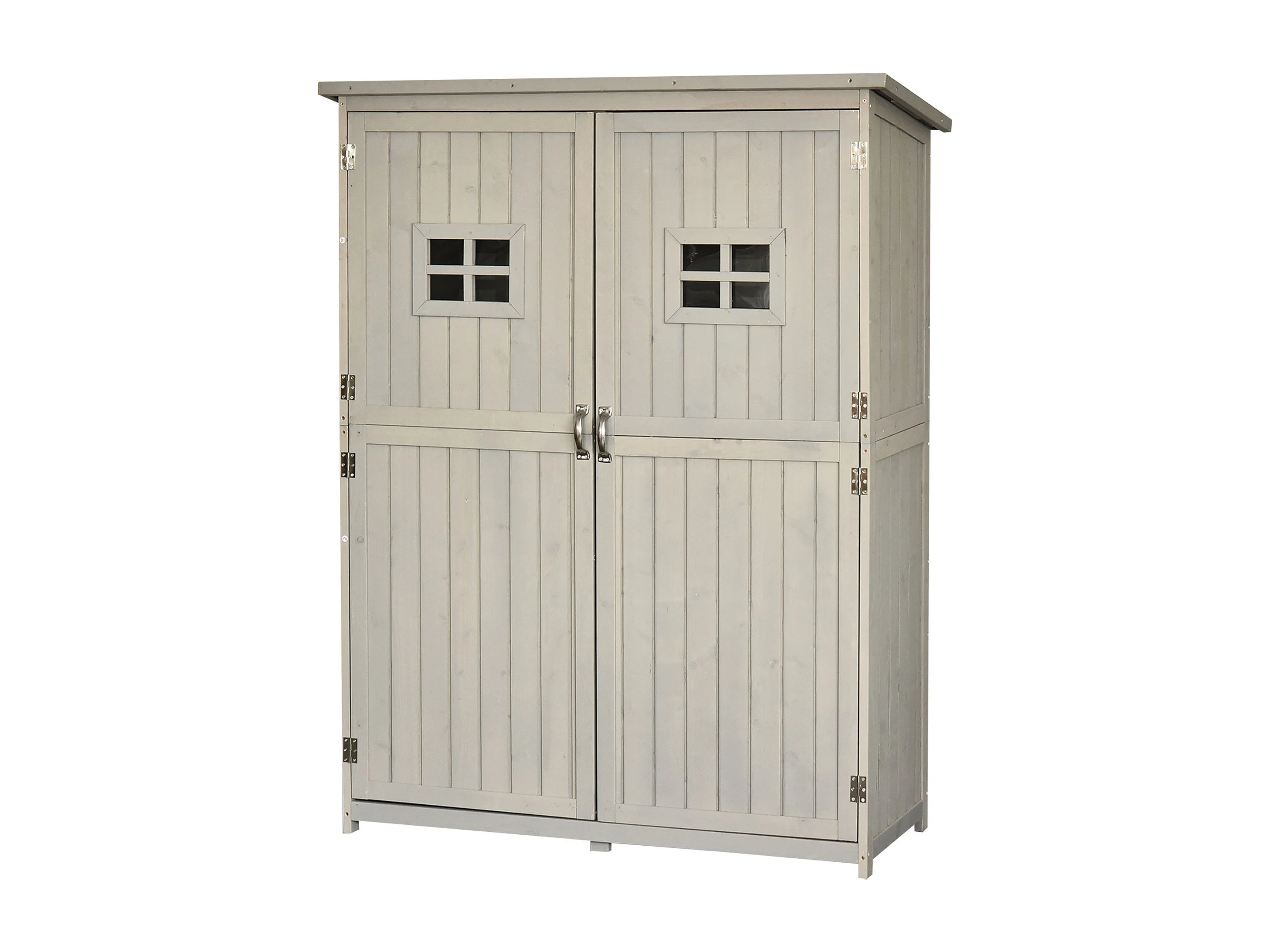 Abri de jardin armoire de jardin remie pour outil ur pied dim. 128L x 50l x 164H cm 2 étagère 2 porte 2 fenêtre toit bitumé étanche boi maif apin pré-huilé gri