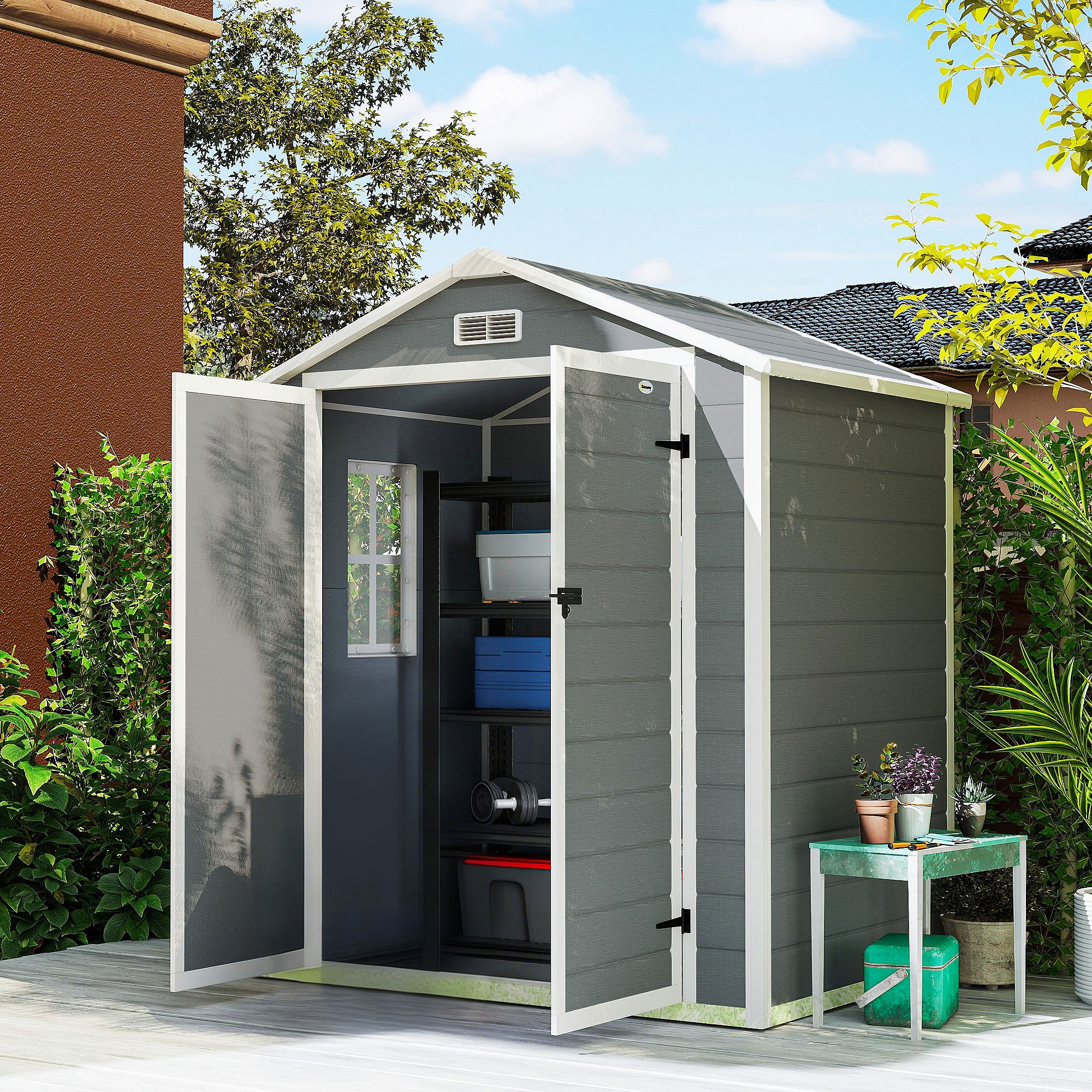 Abri de jardin cabanon 2,12 m² - 2 portes, fenêtre, aération, toit double pente - résine PP gris