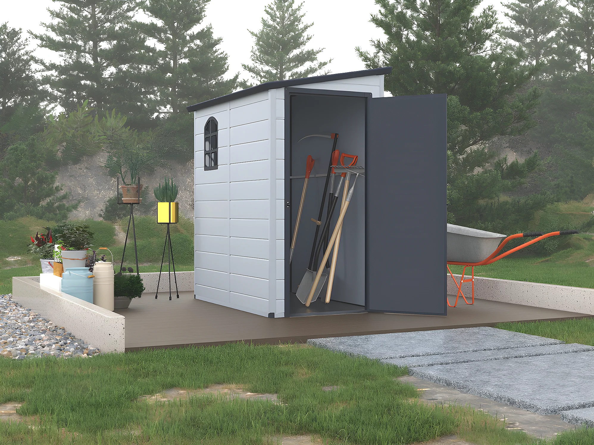 Abri de jardin en résine adossé gris clair 2,09 m² ALBERTO