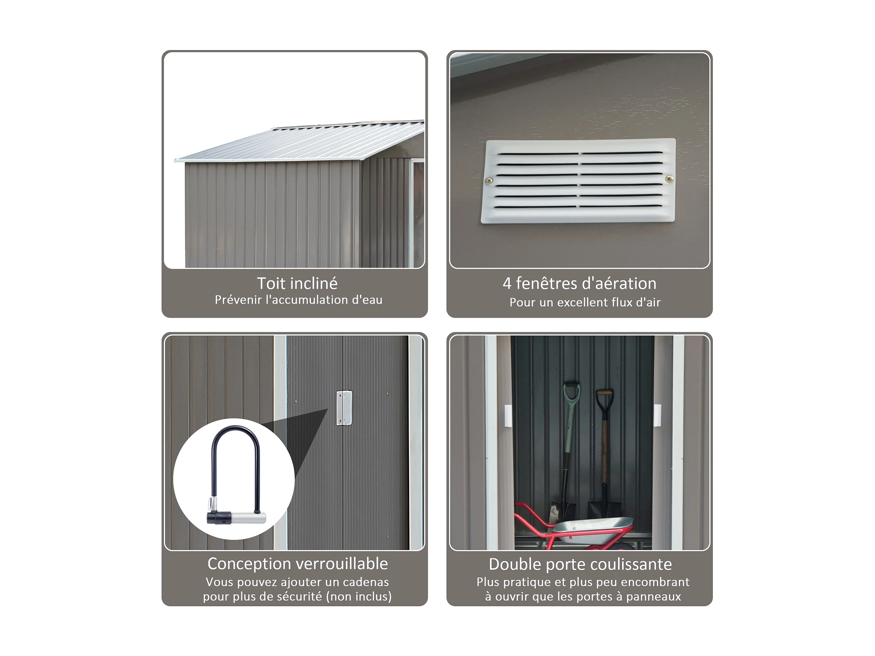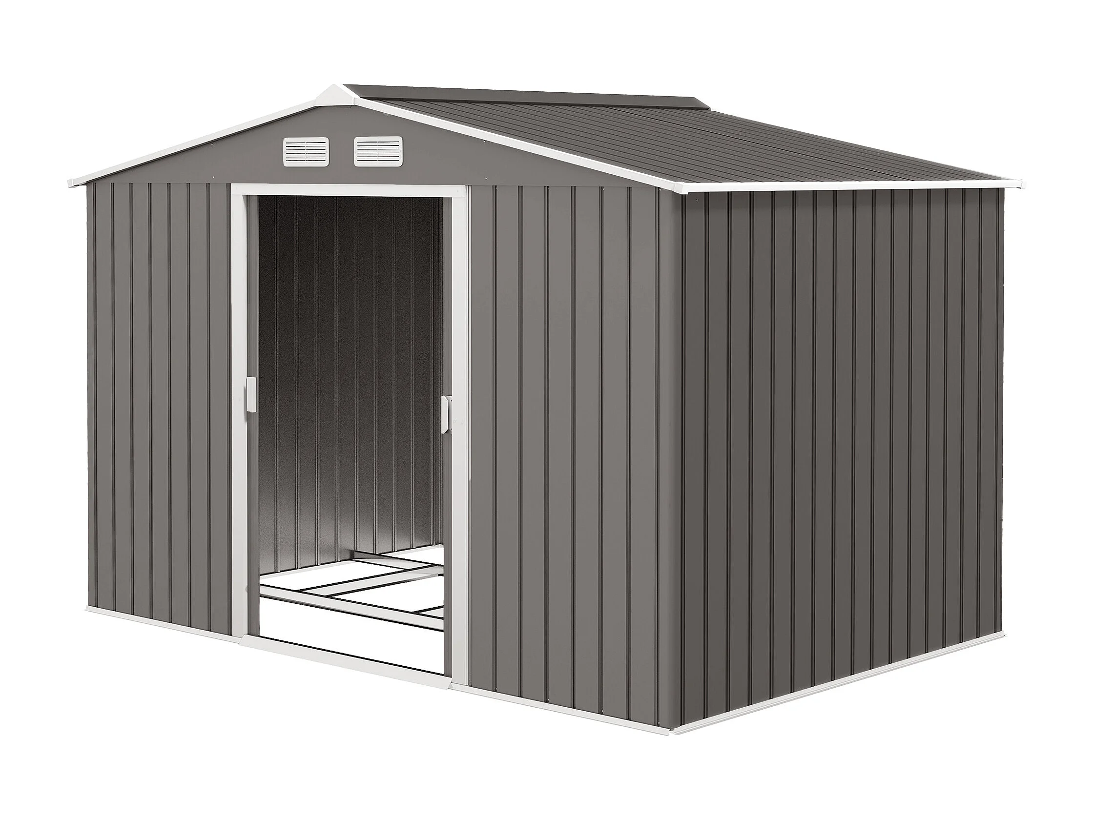 Abri de jardin - remise pour outils - cabanon double porte coulissante - fondation incluse - dim. 277L x 191l x 192H cm - tôle d'acier ondulée grise