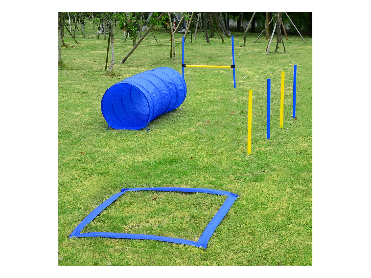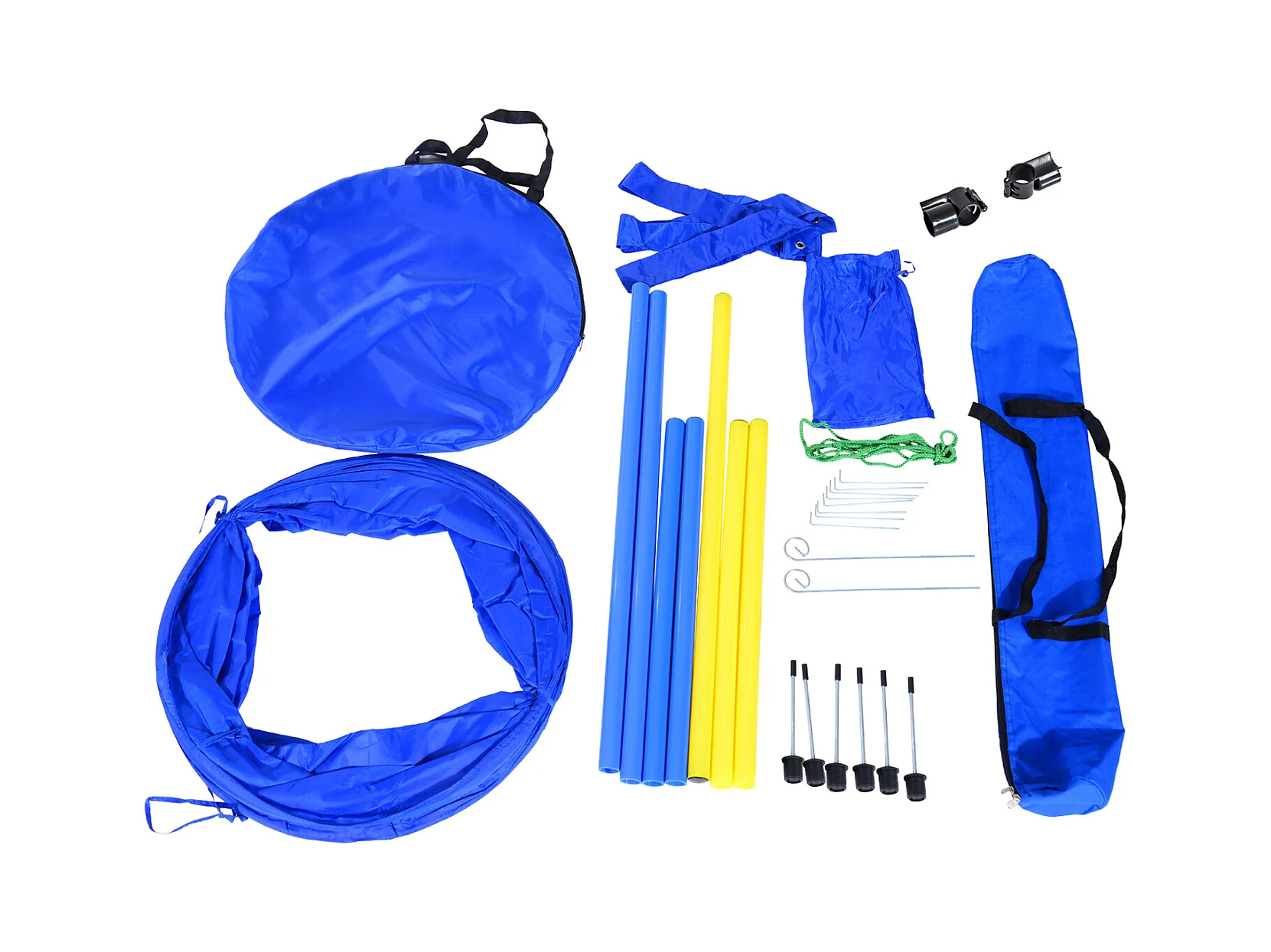 Agility sport pour chiens équipement complet obstacles, tunnel, slalom, zone repos + 2 sacs de transport bleu jaune