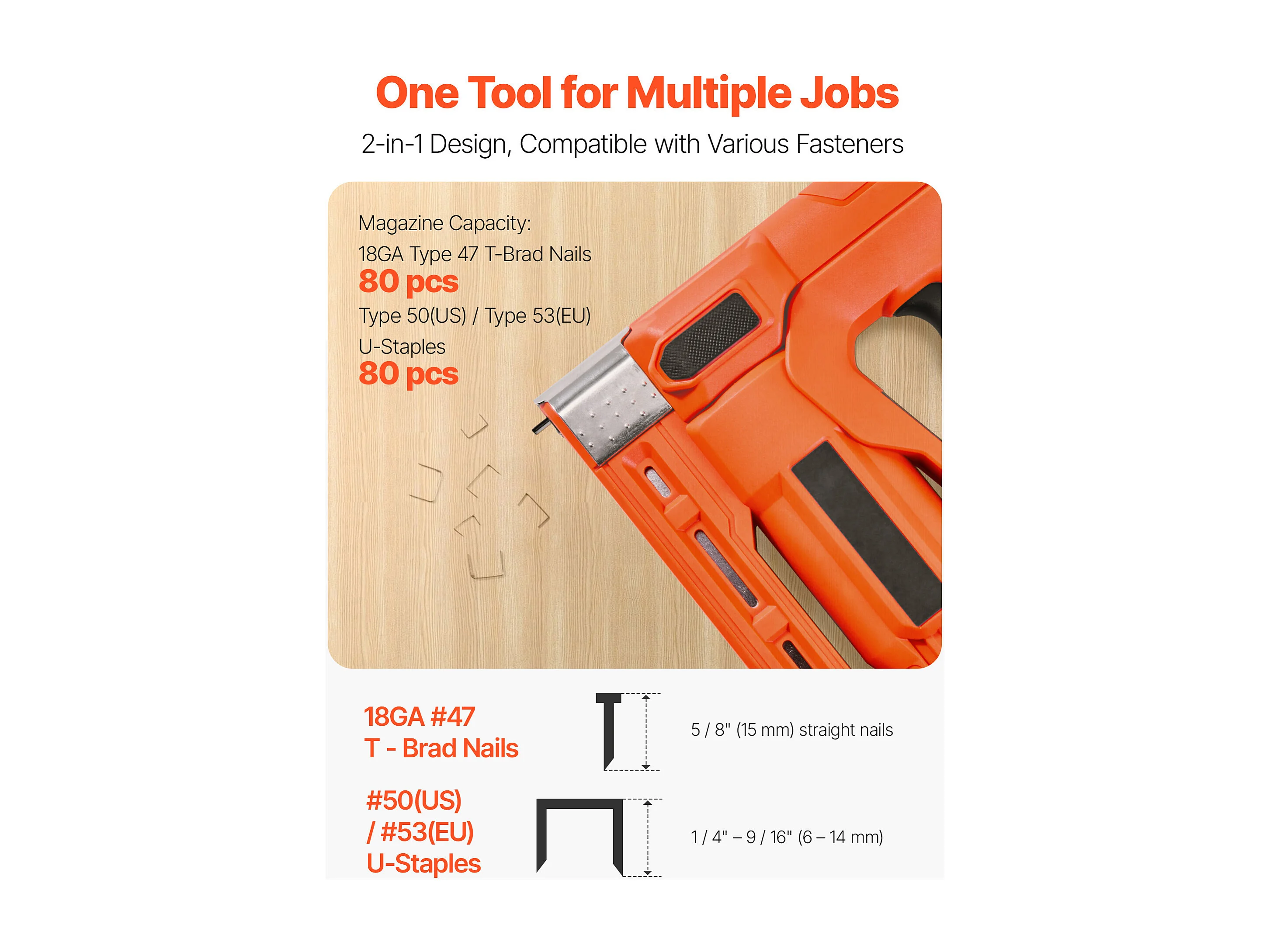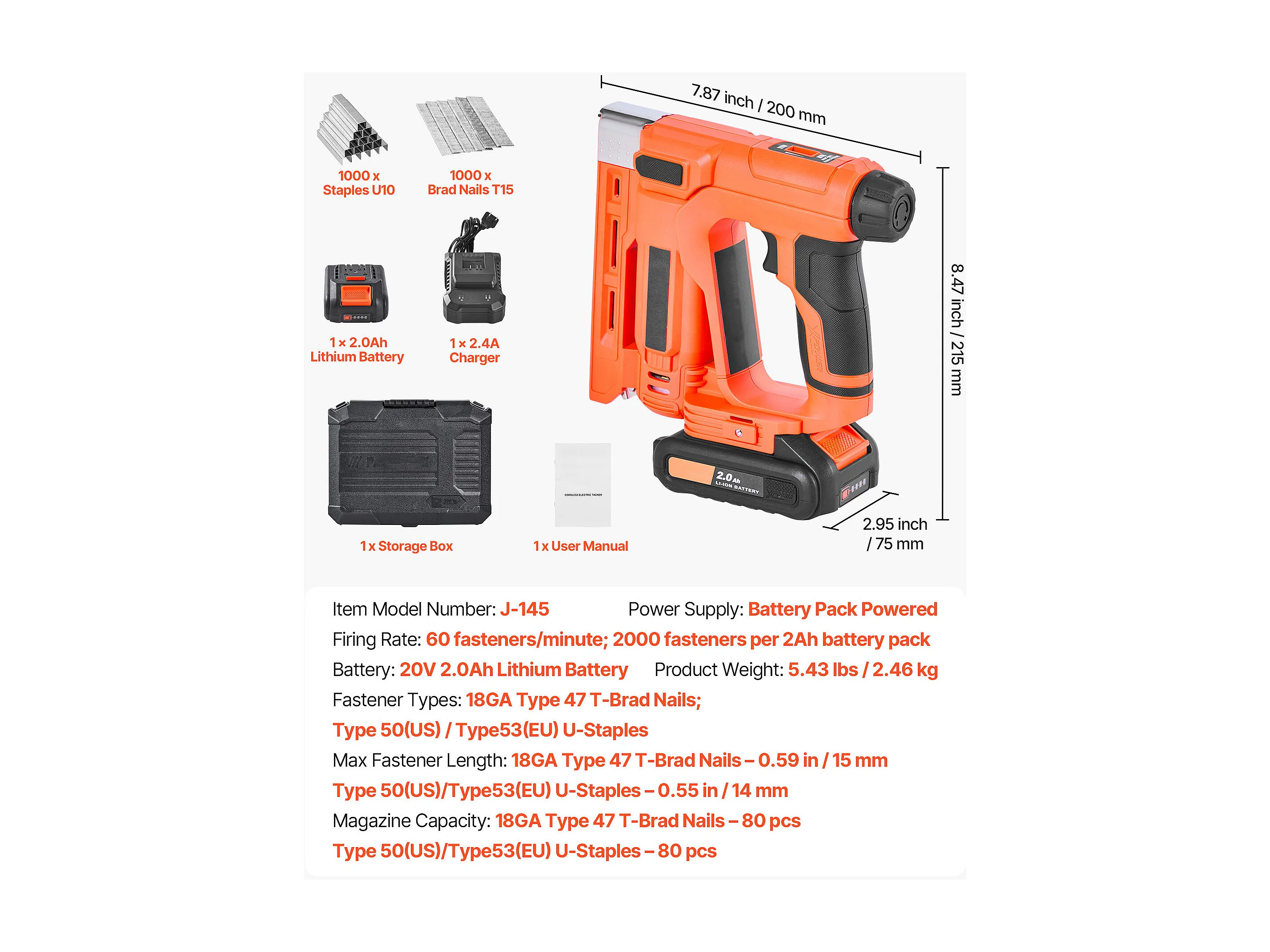 Agrafeuse Cloueuse Électrique SucceBuy 2-en-1, Cloueur sans Fil, Calibre 18, 3.2 cm, avec 500 Clous et 500 Agrafes, avec Batterie et Chargeur