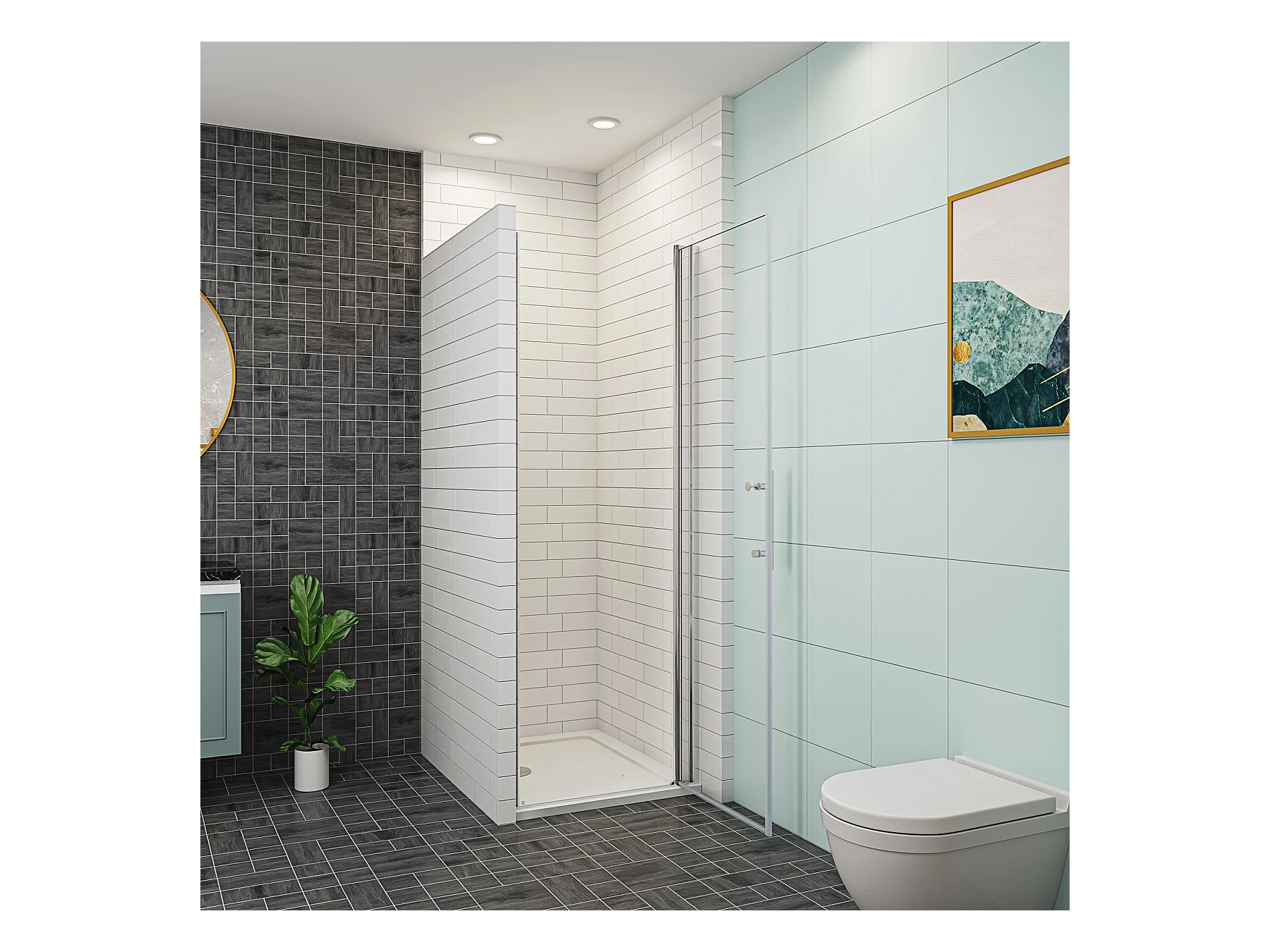AICA porte de douche 90x197cm avec 1 élément fixe en 6mm verre anticalcaire