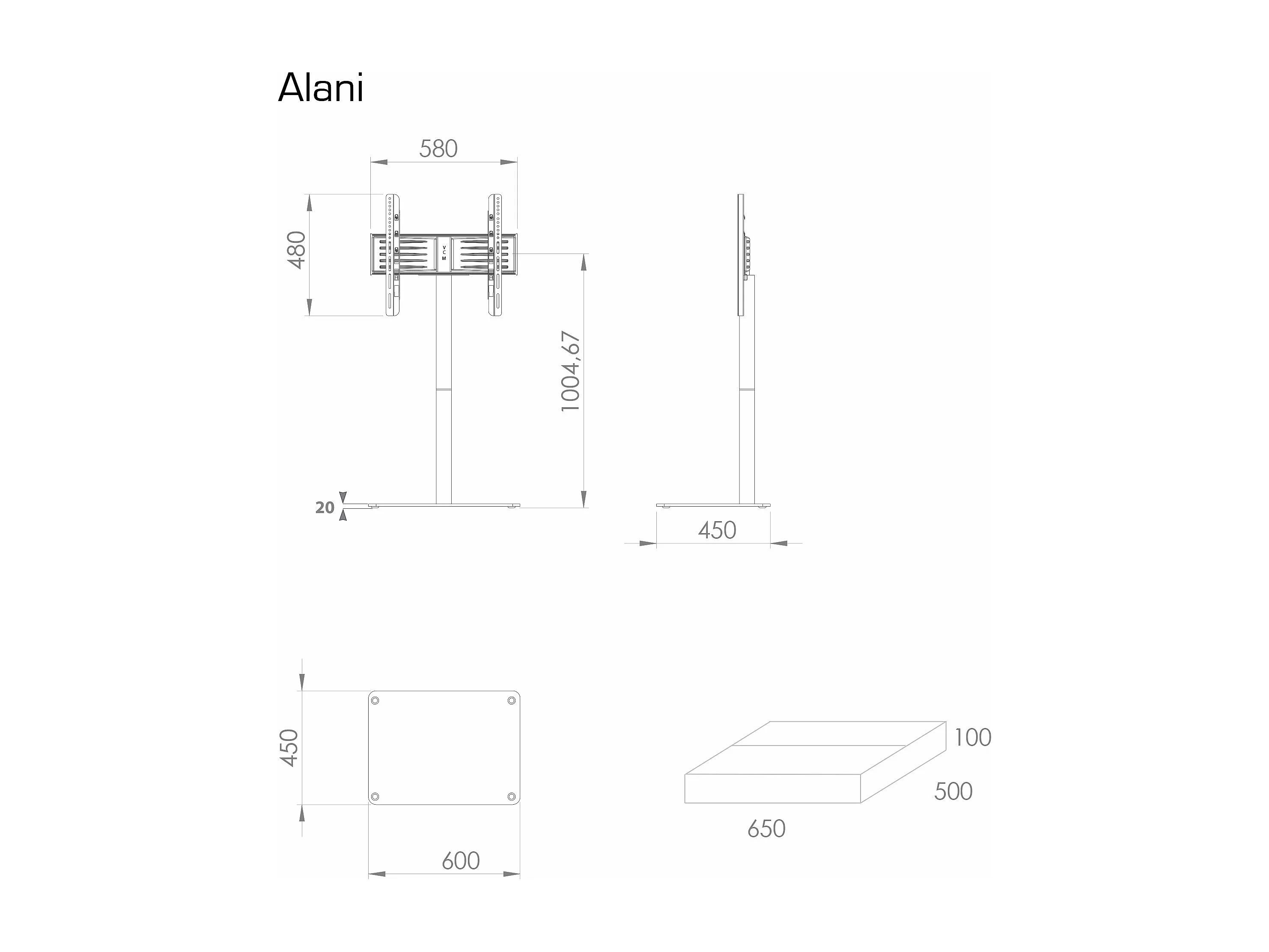 TV stand feet Alani Clear glass H. 100 x W. 60 x D. 45 cm