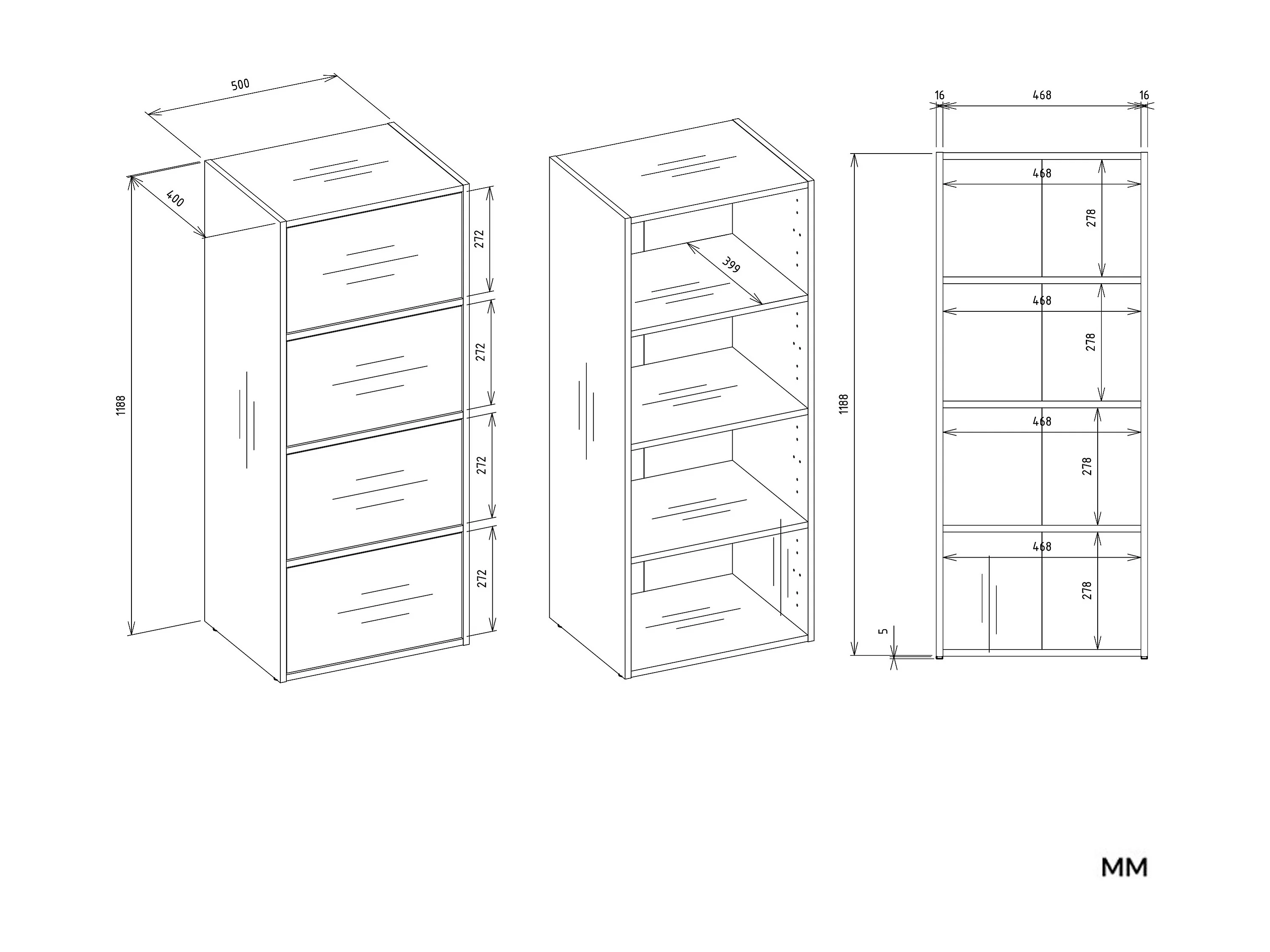 ALMA - Commode 4 portes pour chambre à coucher - 50x119x40 cm - Blanc / Chêne Artisan