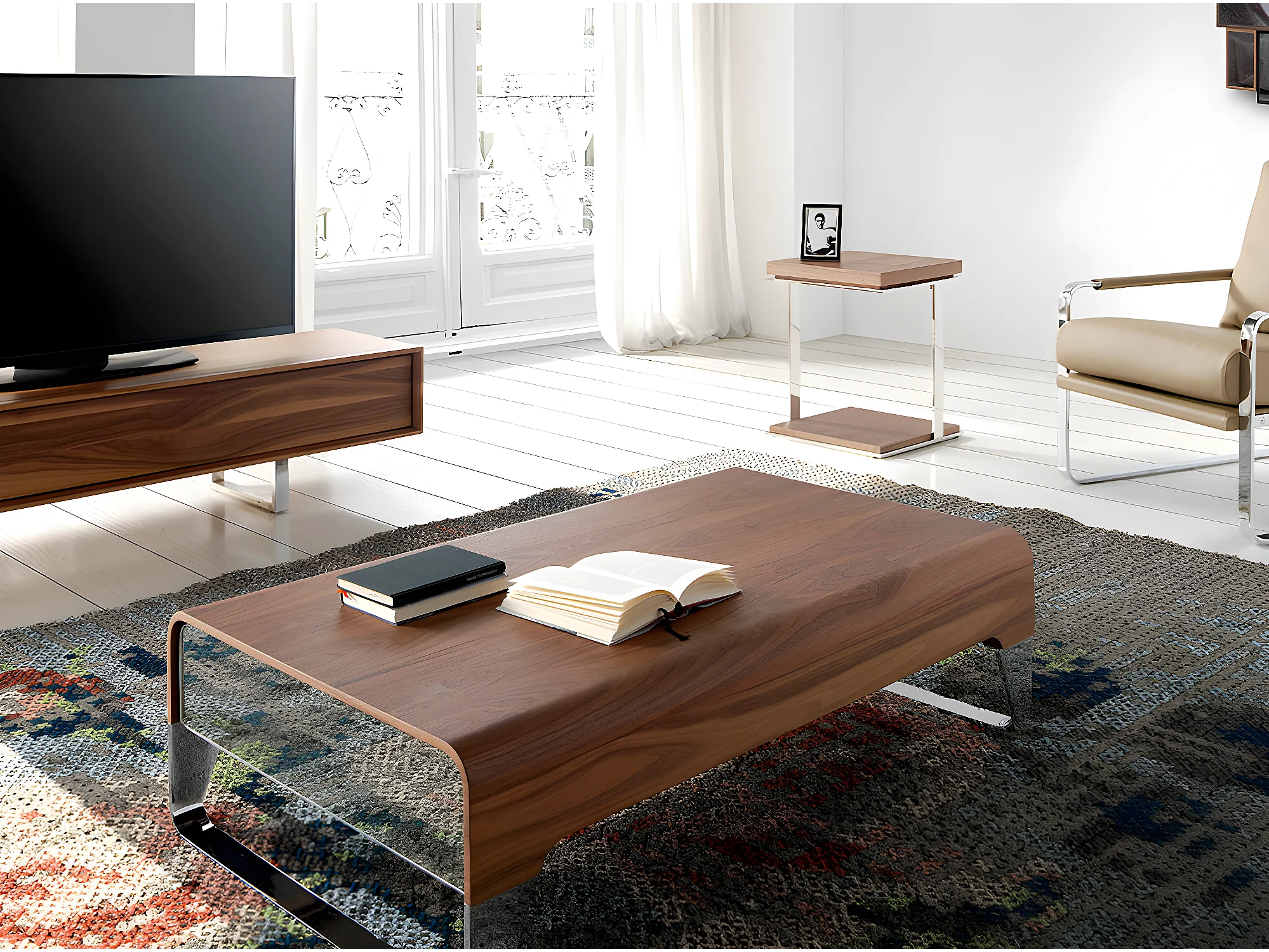 Table d'angle rectangulaire en noyer et acier chromé 2034 ANGEL CERDA