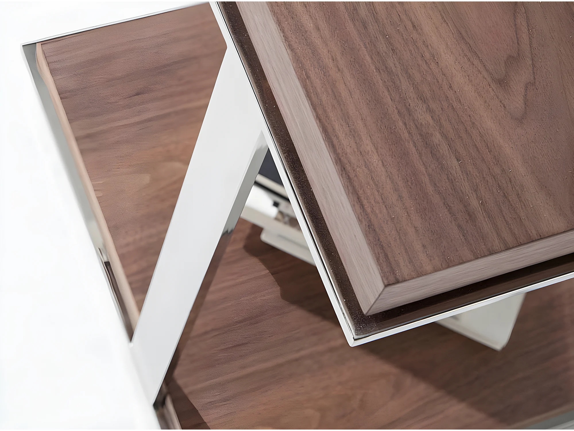 Table d'angle carrée en noyer et acier chromé 2038 ANGEL CERDA