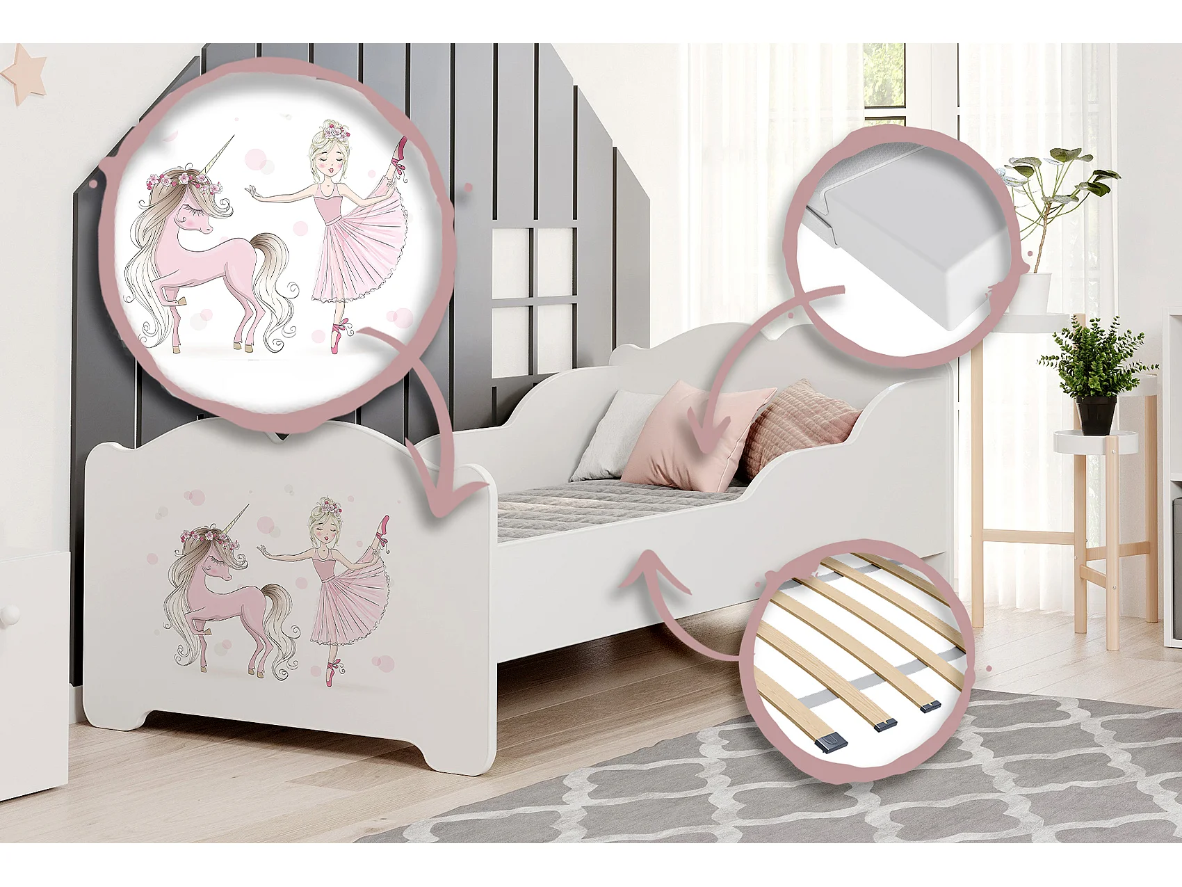 Anna - lit simple 160x80 avec des graphismes pour enfants, dans un ensemble avec un matelas et un cadre
