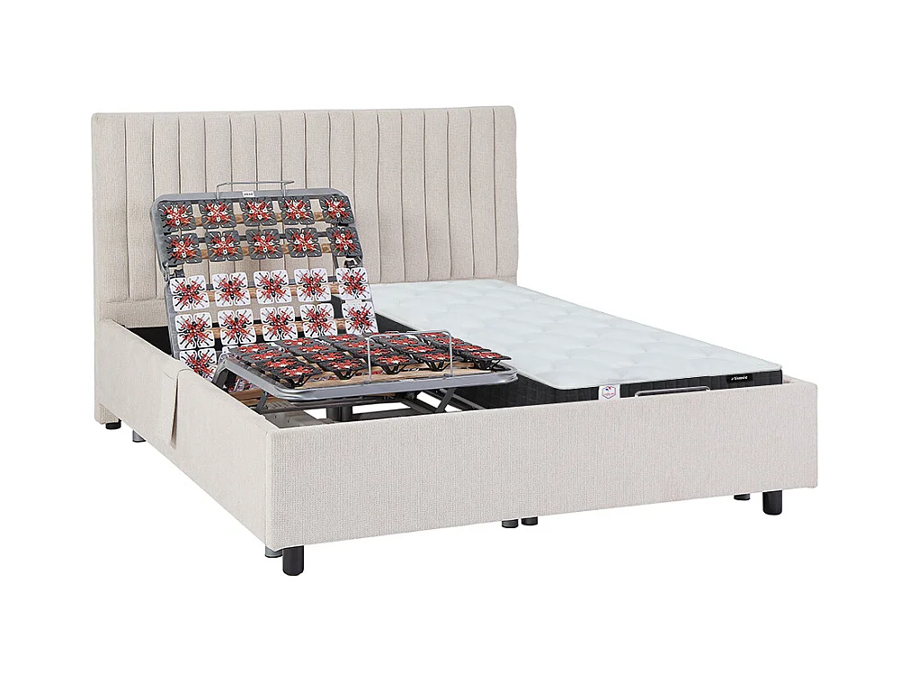 Lit électrique de relaxation déco tout plots + matelas ressorts ensachés et mémoire de forme - 2 x 80 x 200 cm - Tissu - Beige - ANTALISA de YSMÉE