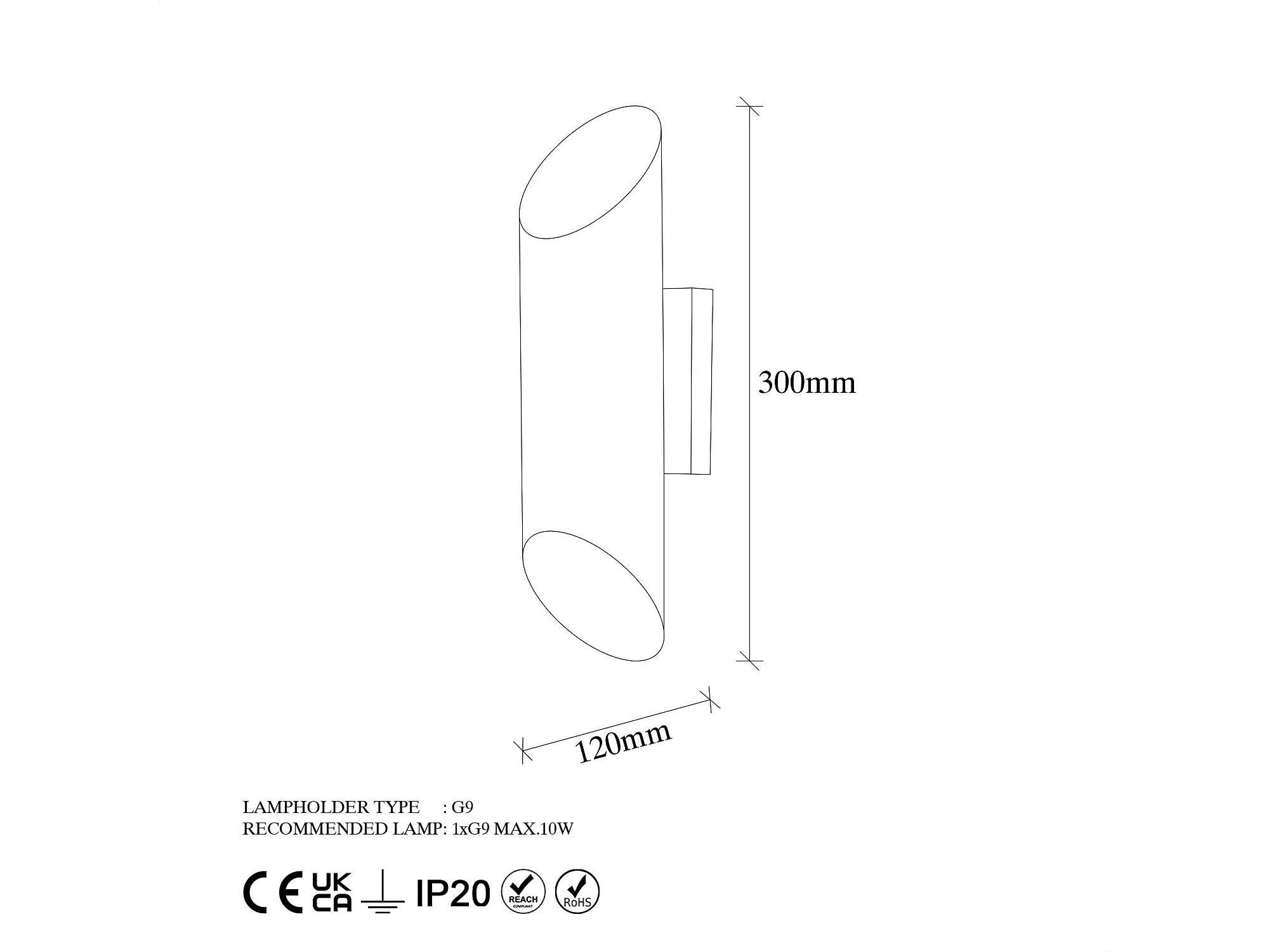 Applique murale 2 ampoules Rumble 30cm Métal Blanc et Or