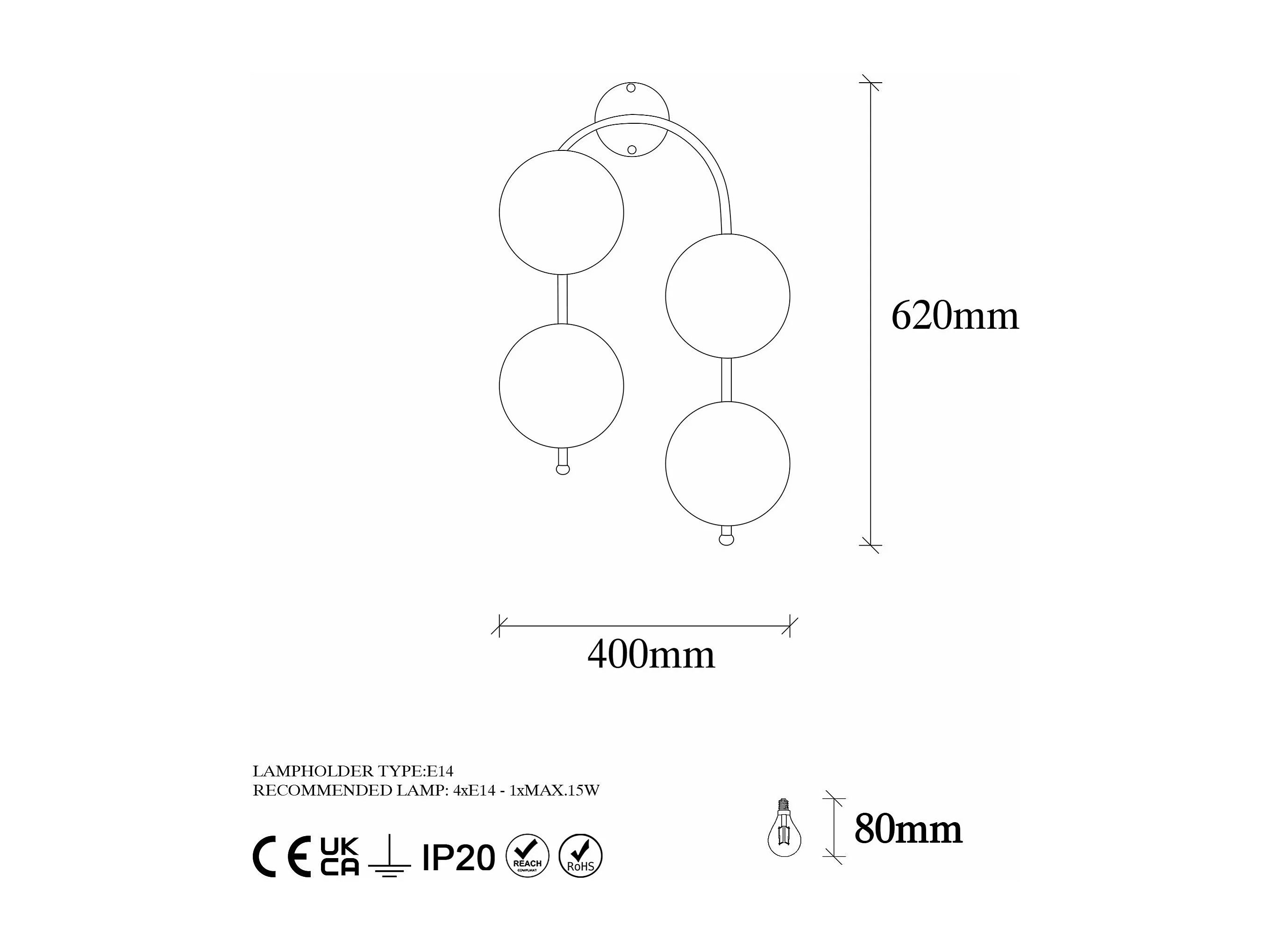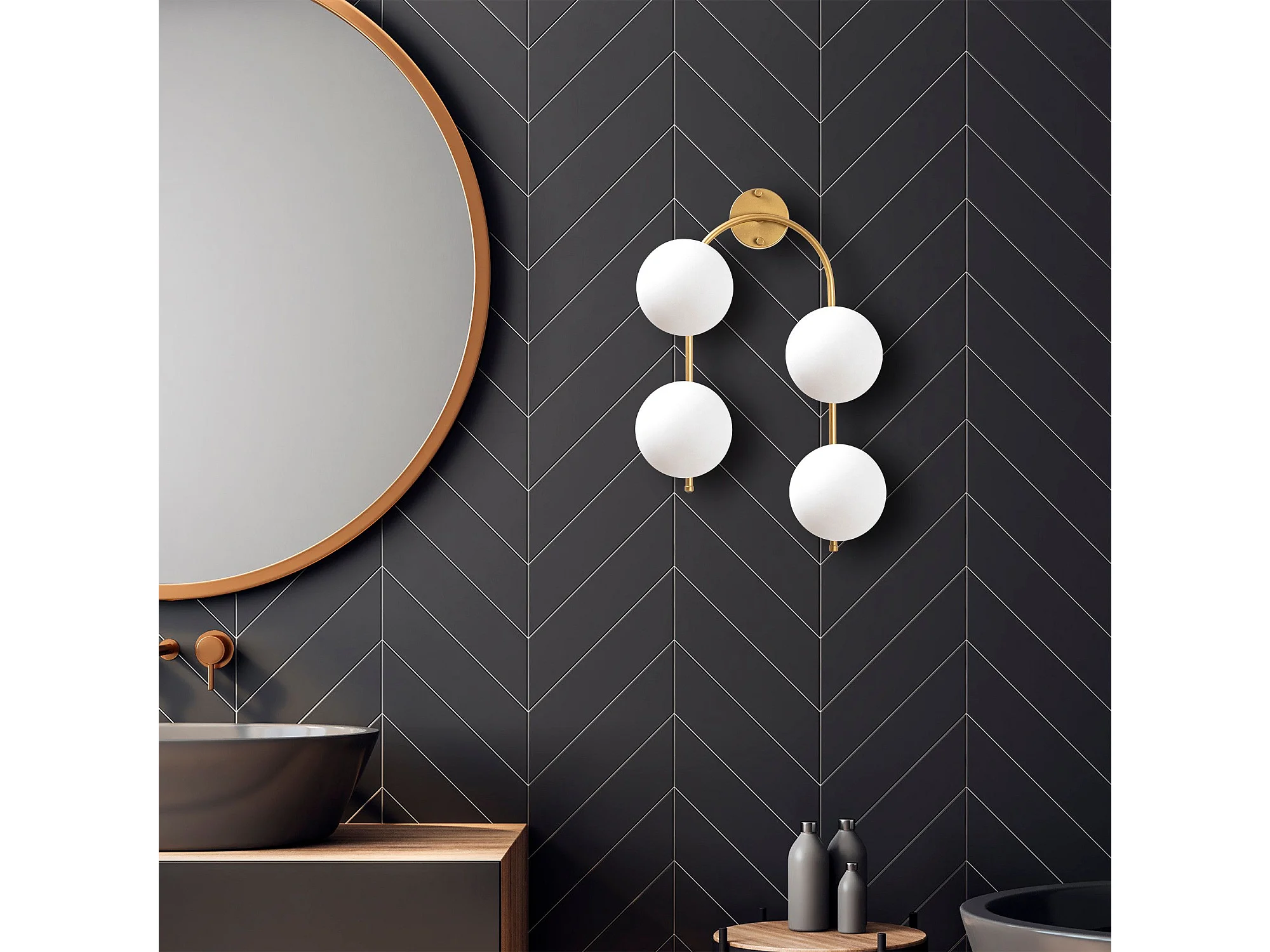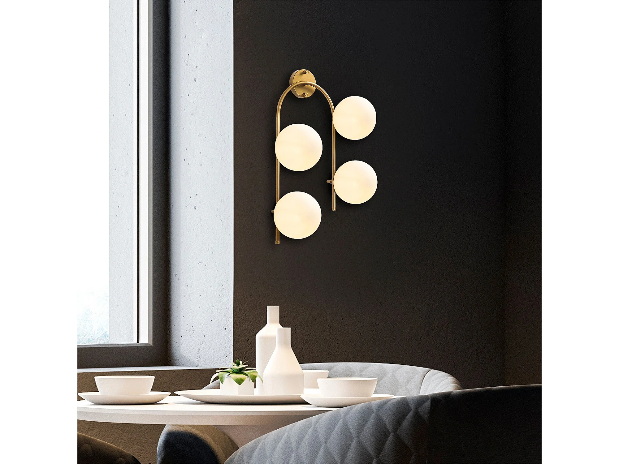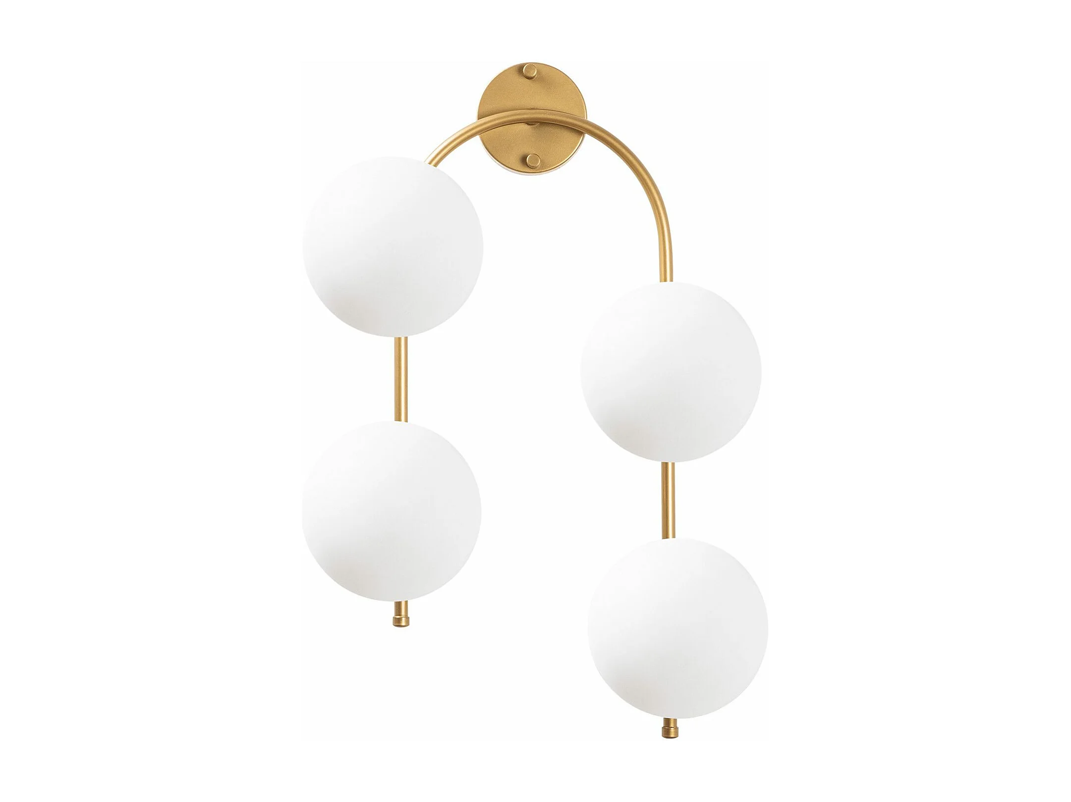 Applique murale 4 lampes sphériques crochet U asymétrique Bulla 40x62cm Verre Blanc et Métal Or