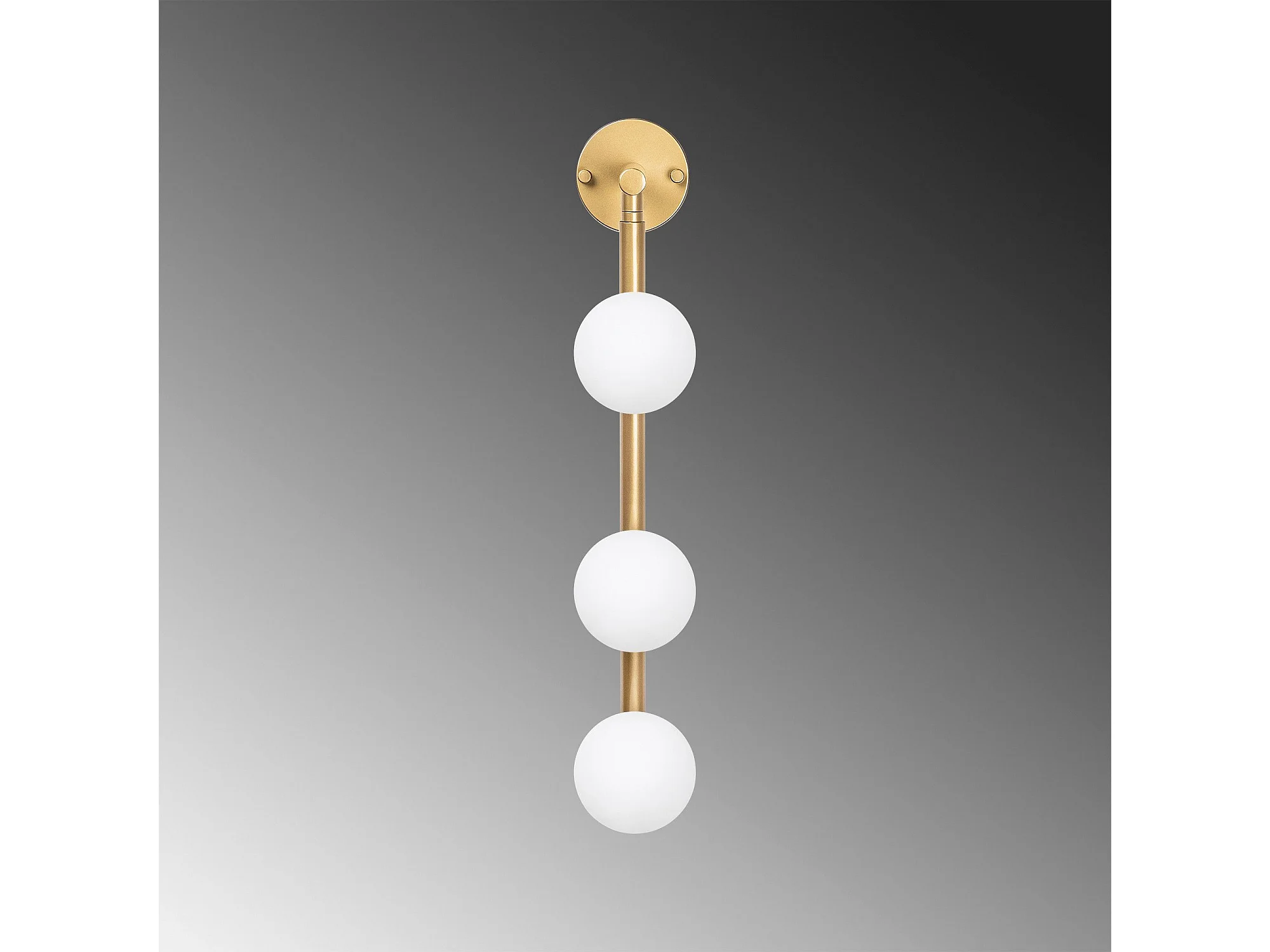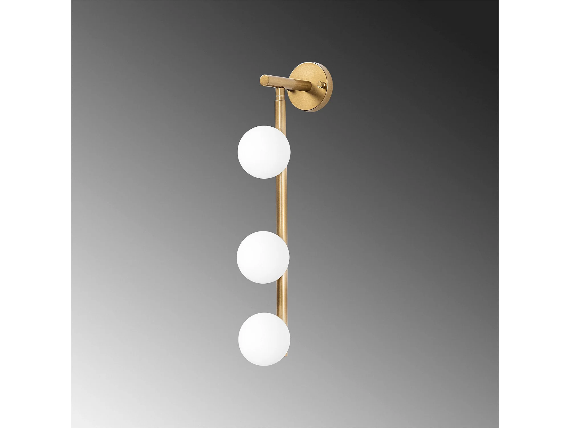 Applique murale barre 3 lampes Bulla 59cm Verre Blanc et Métal Or