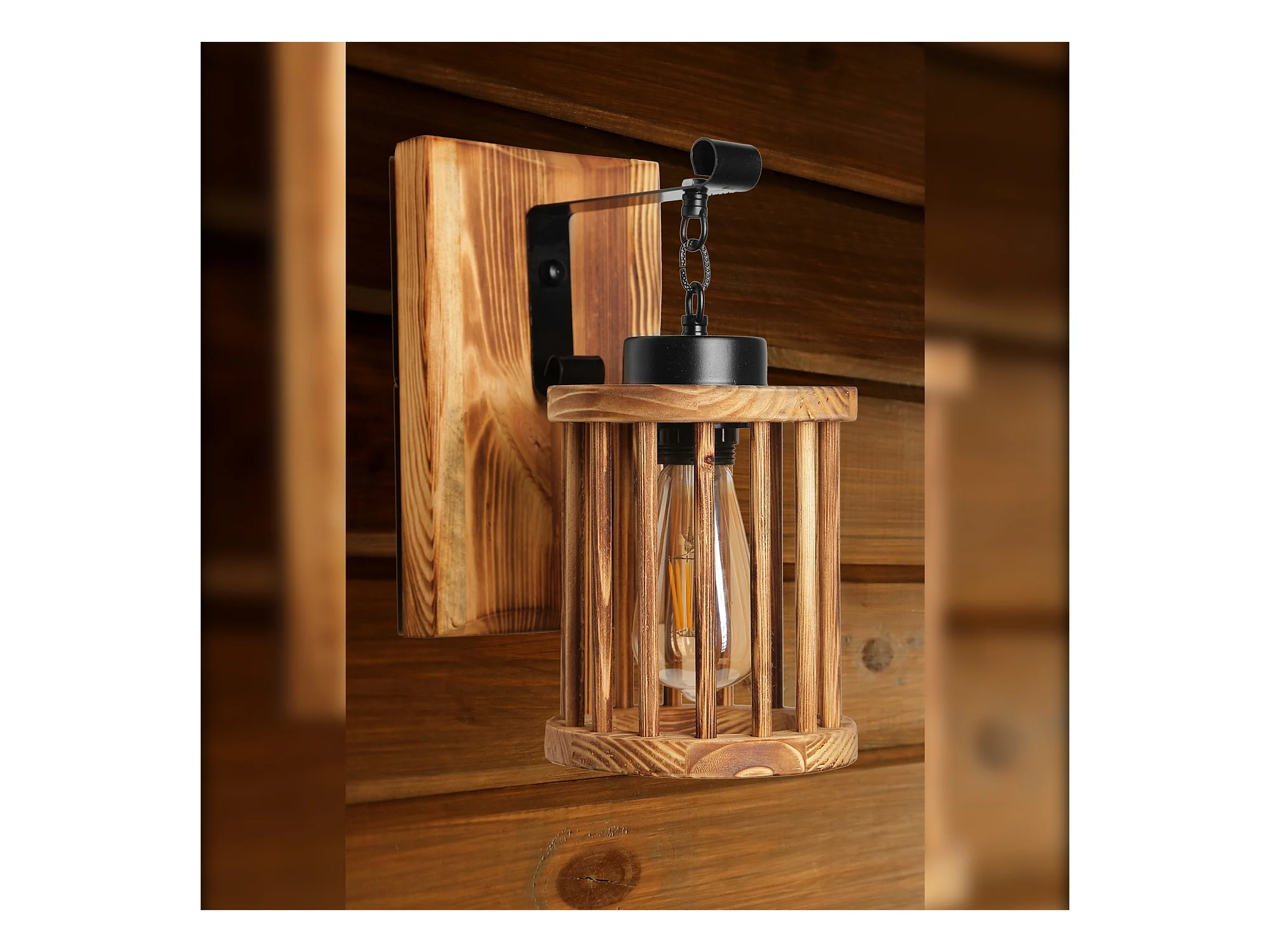 Applique Murale Interieur, En Bois Et Métal, Luminaire Rétro Industriel , Marron 15x15x25 Cm