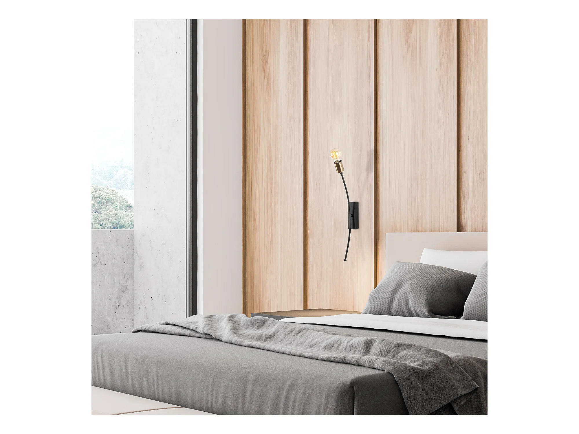 Applique Murale Interieur, Lampe Murale Industrielle Bois, Noir 8x38x15 Cm