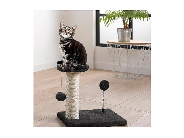 Arbre à Chat avec Jouets "1 Plateforme" 28cm Gris