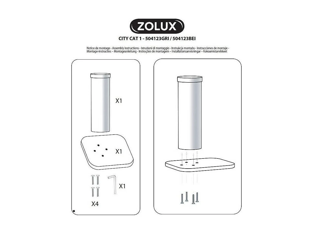 Arbre à chat CITY CAT numero 1, hauteur 62 cm, poteau ø 17 cm, couleur gris