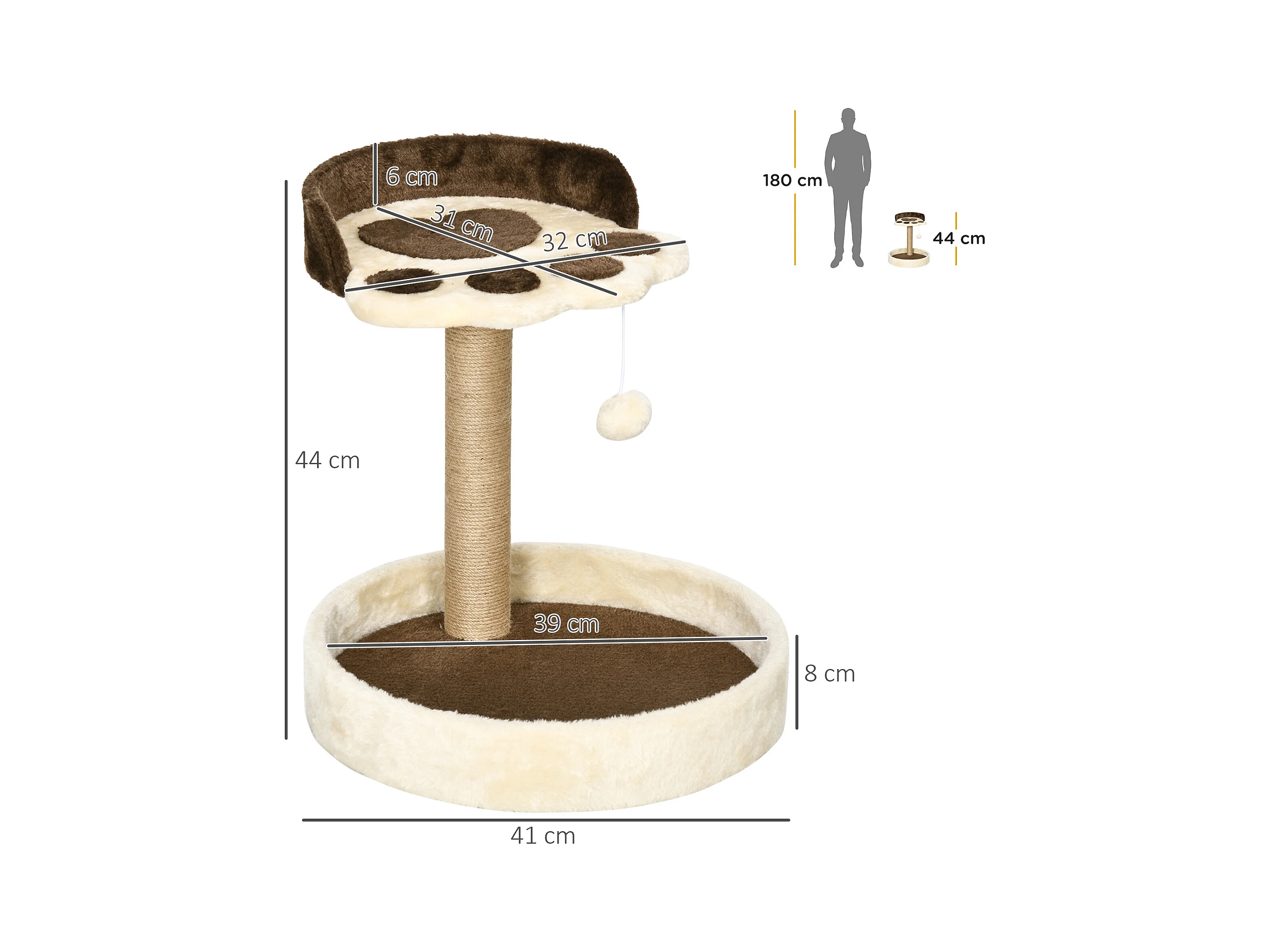Arbre à chat griffoir design patte de chat jeu boule suspendue panier plateforme observation peluche beige marron jute naturelle