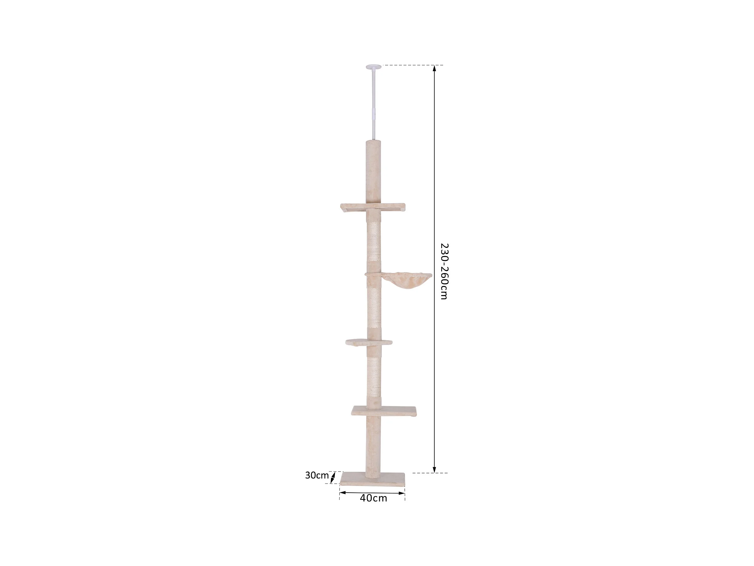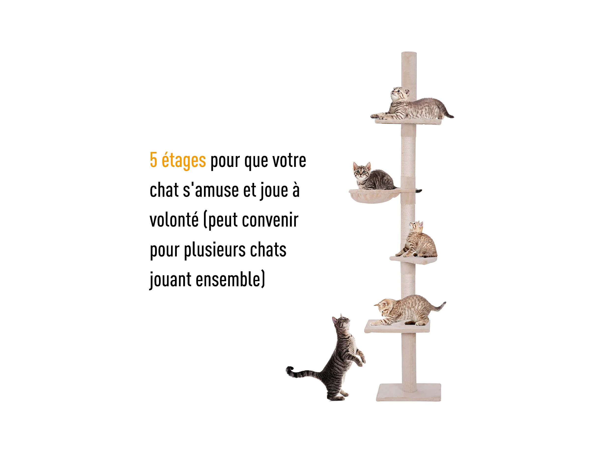 Arbre à chat poteau à griffer L40 x l 34 x H 230-260 cm 5 niveaux d'activités beige
