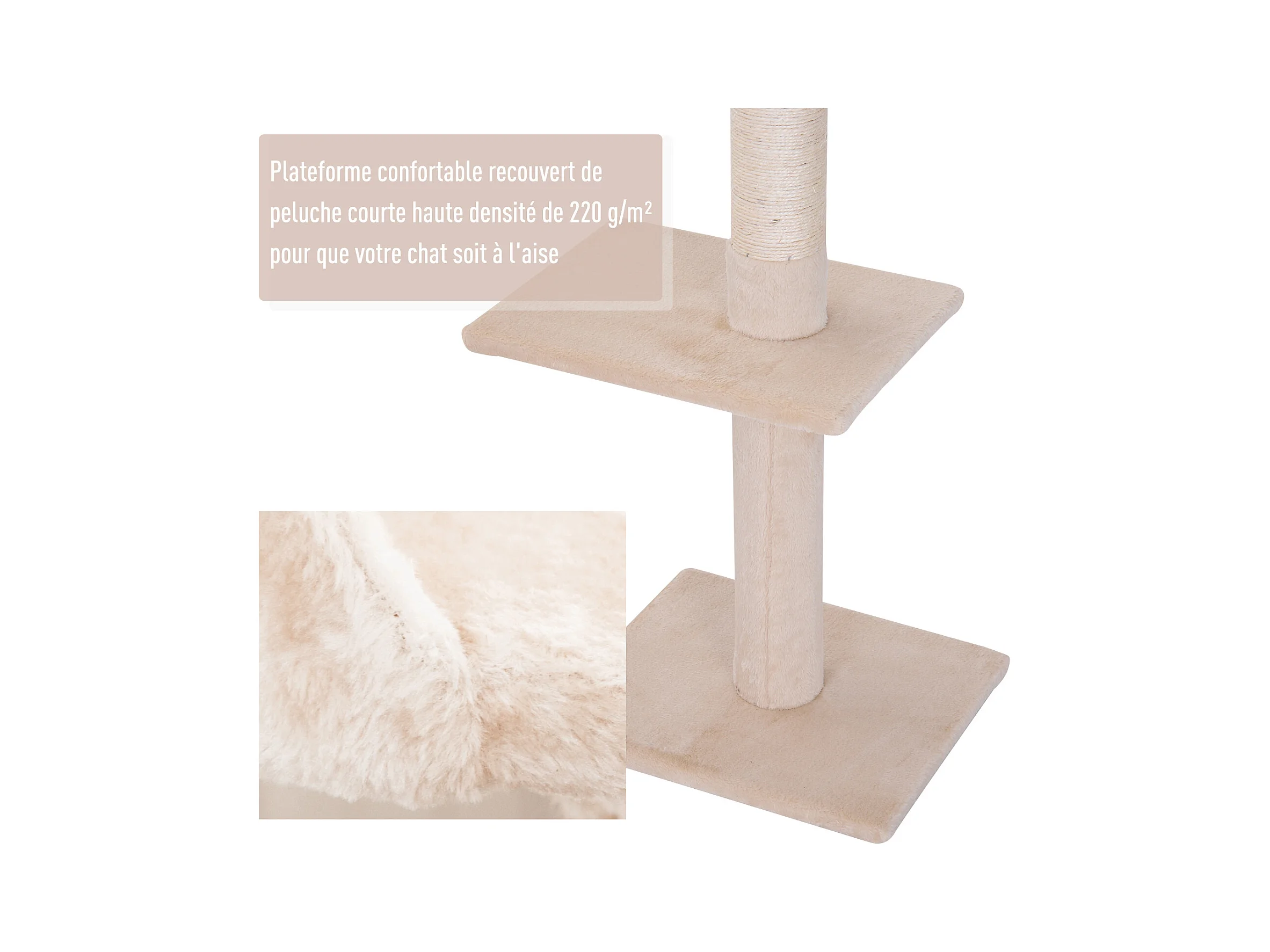 Arbre à chat avec griffoir centre d'activités 2 plateformes coussin crème