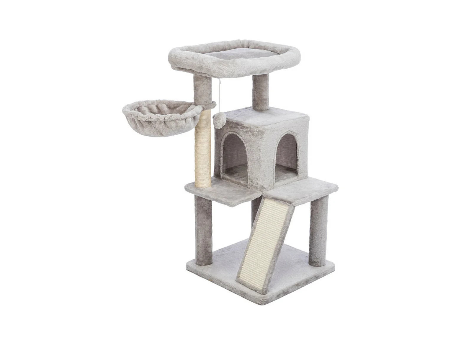 Arbre à chat griffoirs sisal naturel et massant grande niche plateforme panier jeu boule suspendue peluche gris