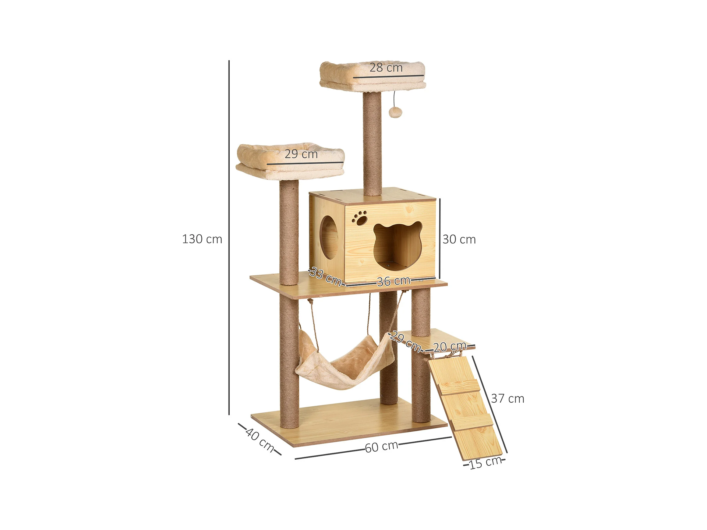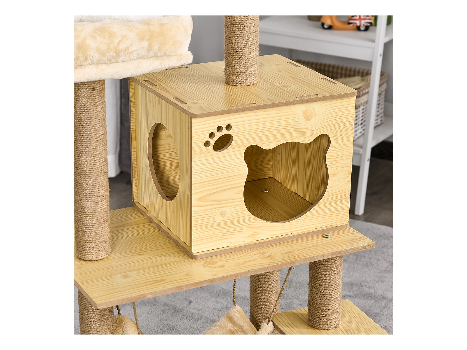 PawHut Arbre à Chats avec Griffoir Niche Poteaux Peluche Haute Densité 45L x 40L x 148H cm Beige