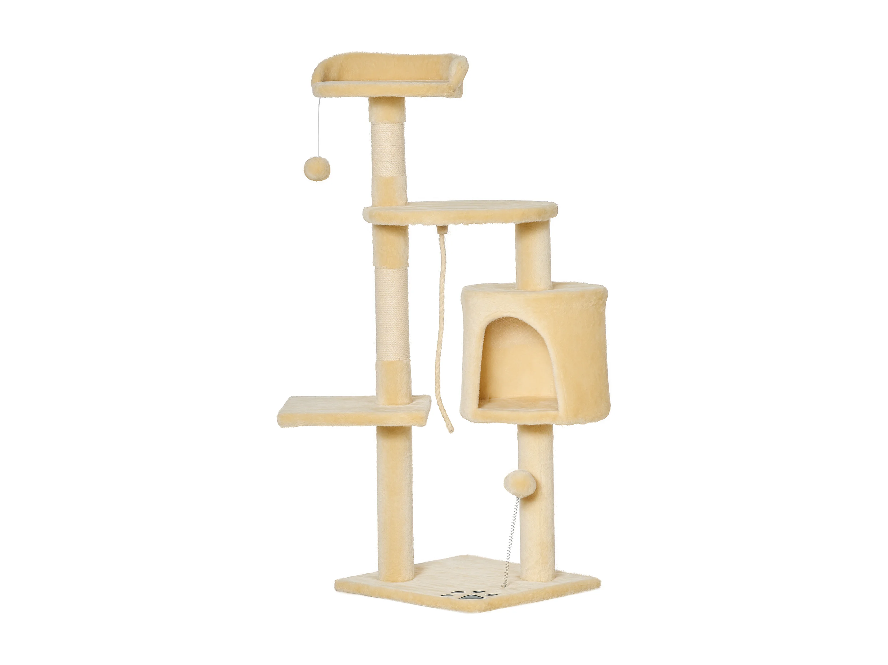 PawHut Arbre à Chats avec Griffoir Niche Poteaux Peluche Haute Densité 45L x 40L x 148H cm Beige