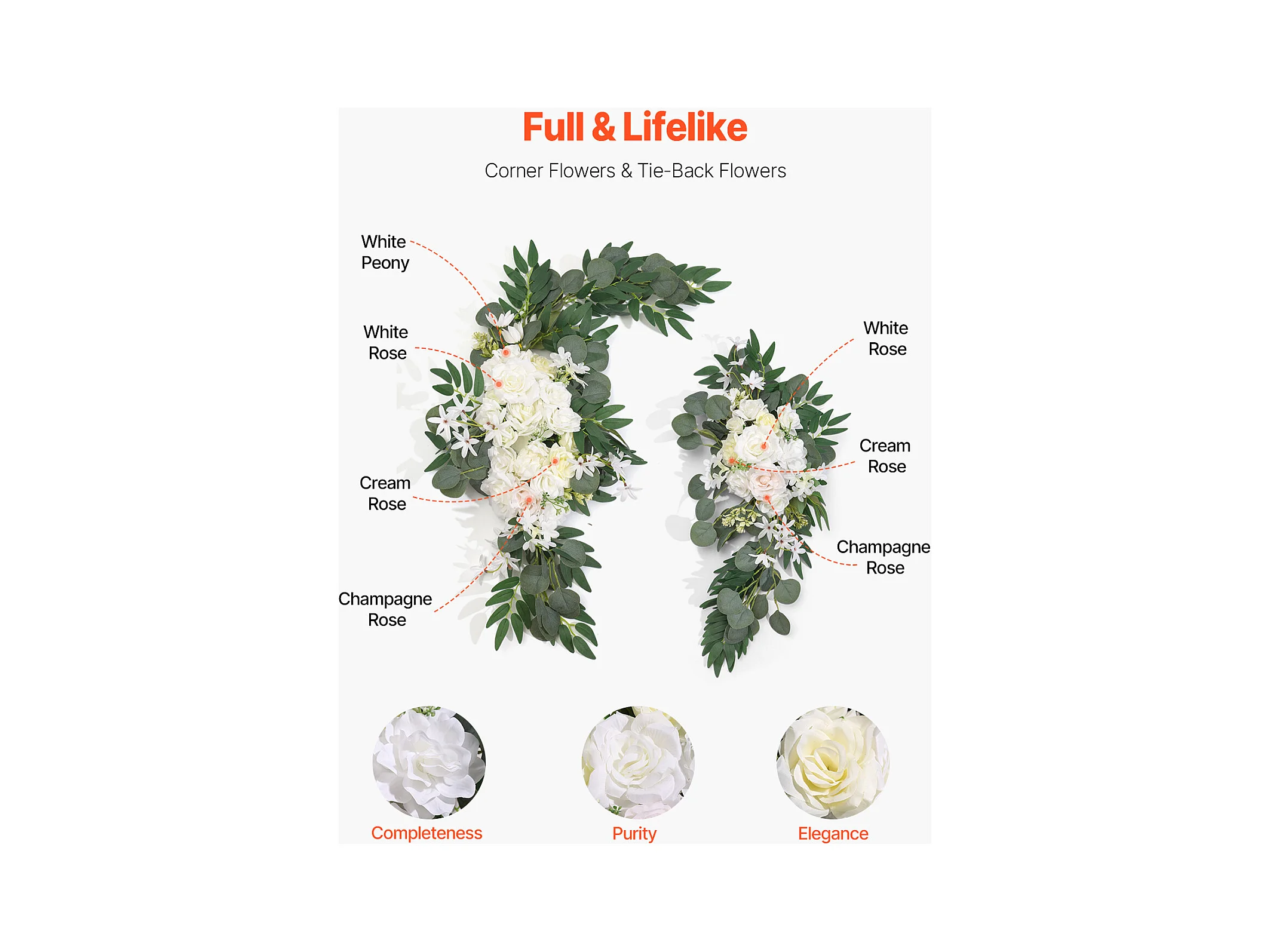Arche de Mariage SucceBuy Kit de Fleurs Artificielles pour Arche de Mariage, Blanc, 2 Fleurs et 1 Rideau