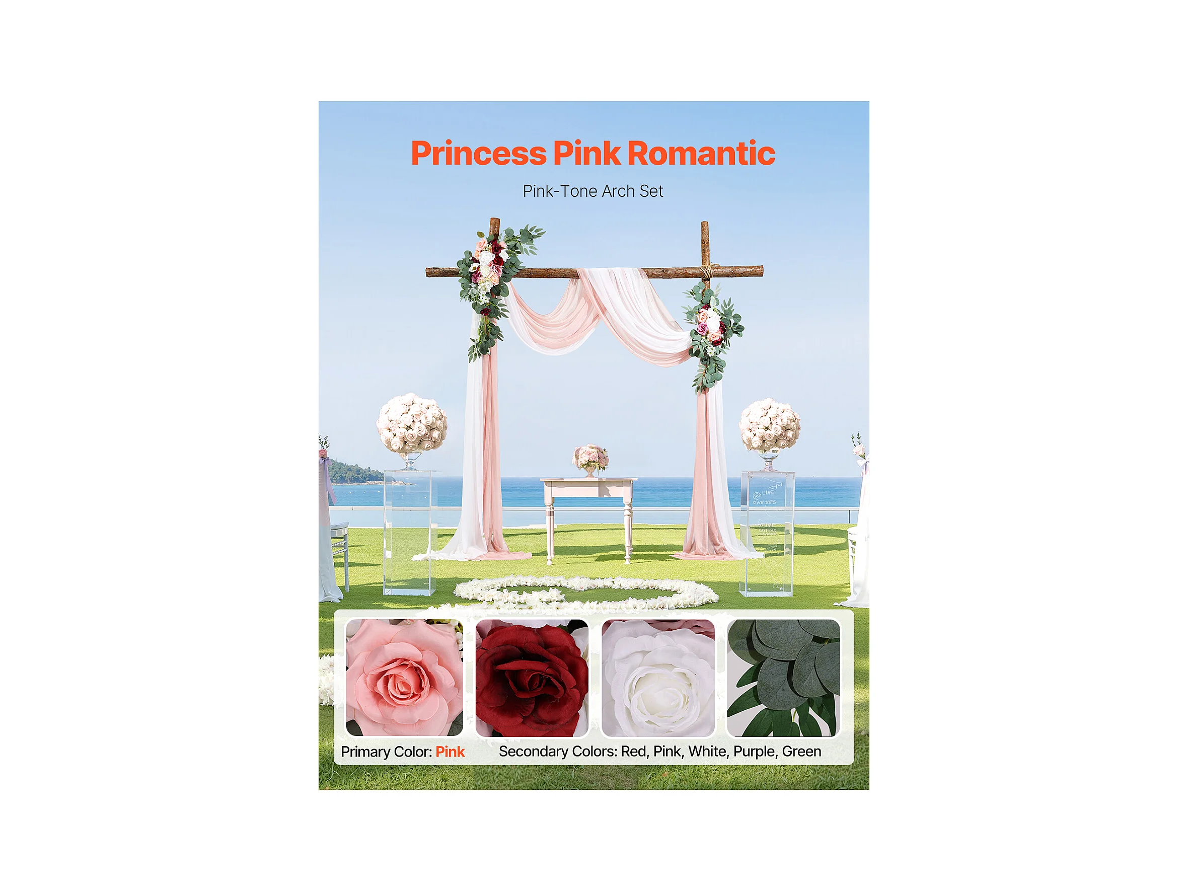 Arche de Mariage SucceBuy Kit de Fleurs Artificielles pour Arche de Mariage - Rose, 2 Fleurs et 2 Rideaux