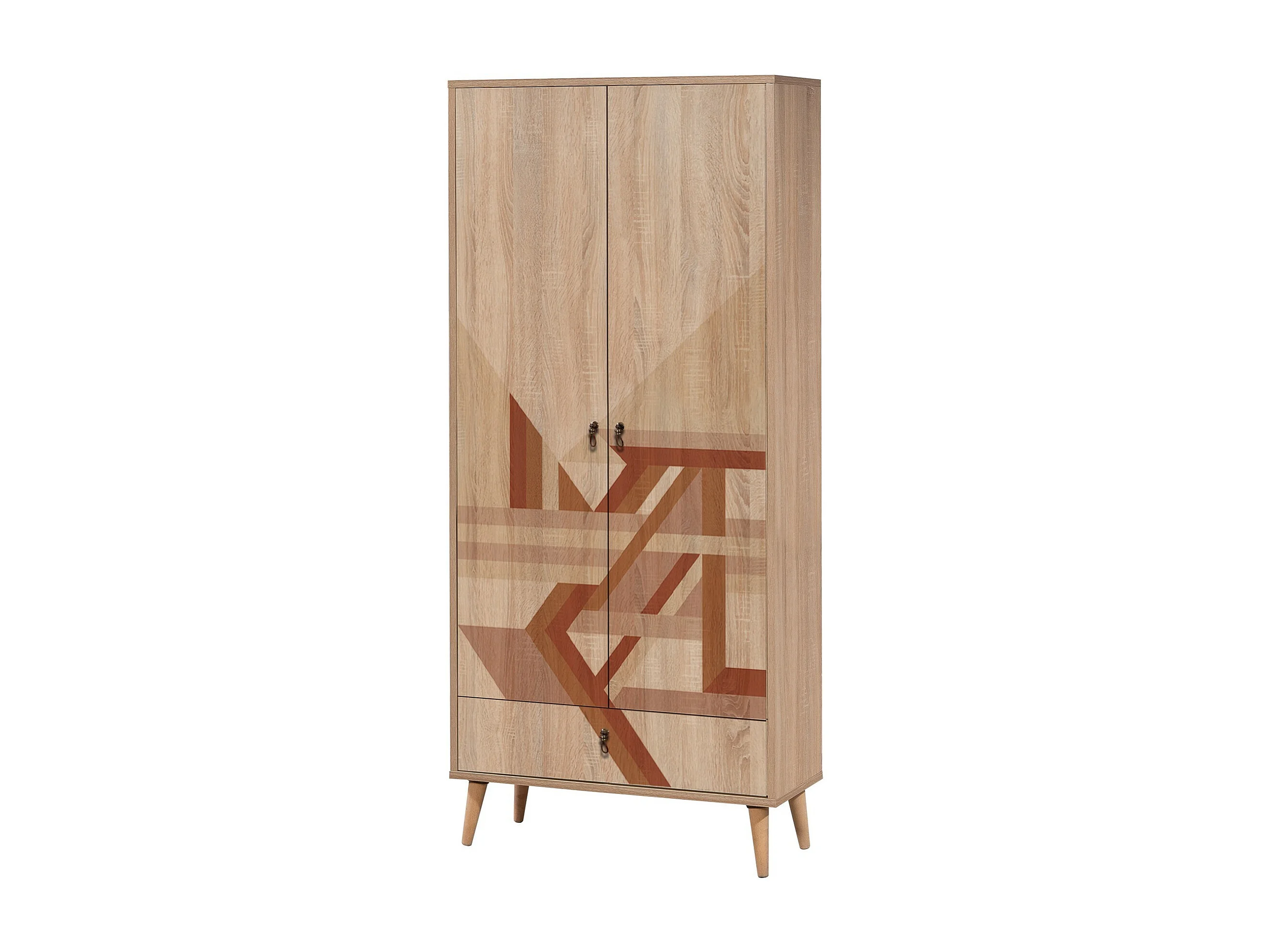 Armoire 2 portes et 1 tiroir Pertha L80cm Bois Motif Géométrique Marron