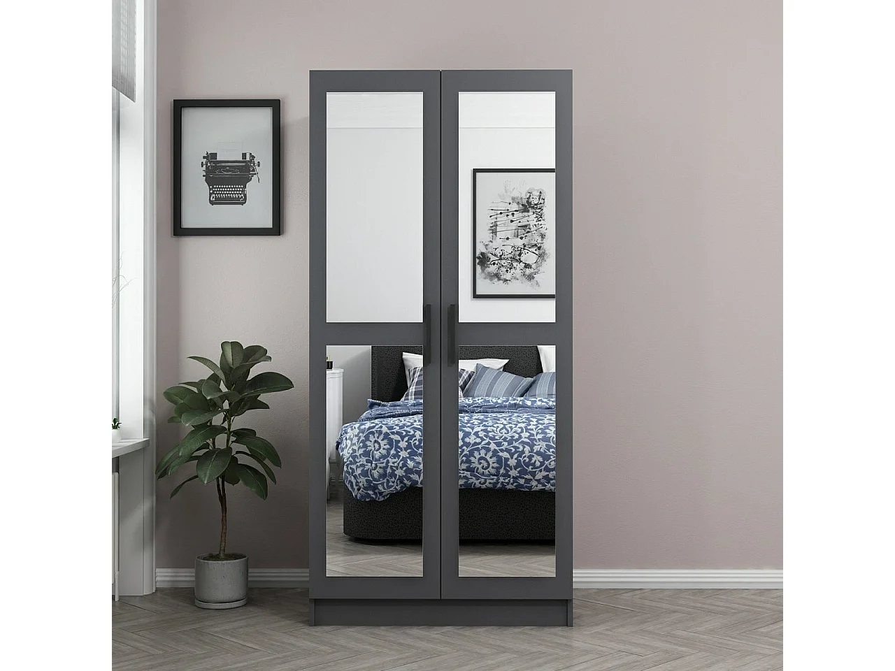Armoire 2 portes et 4 miroirs Sanur L90xH190cm Anthracite