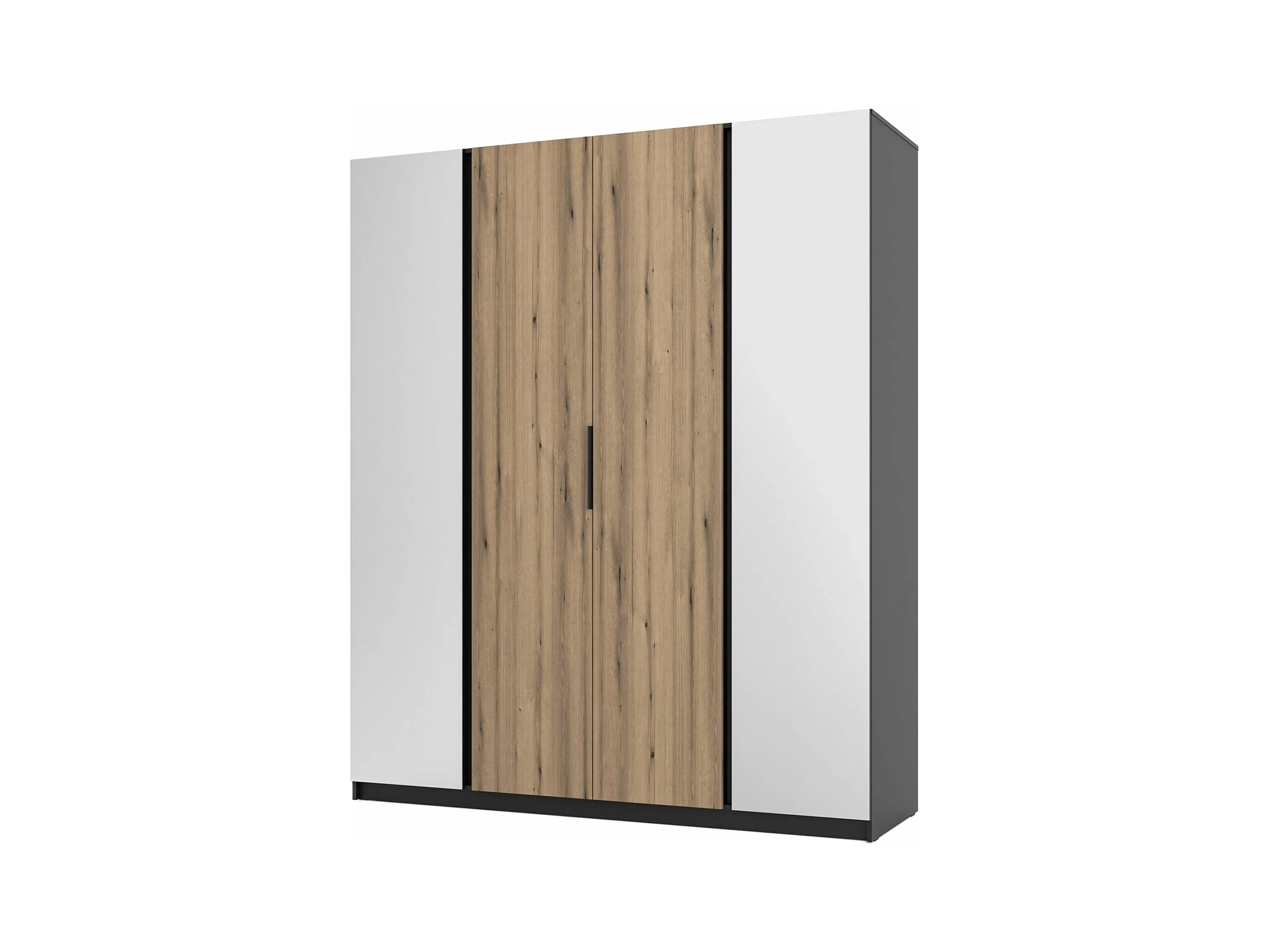 Armoire 4 portes avec miroir - 200 cm - chêne evoke - KAJA