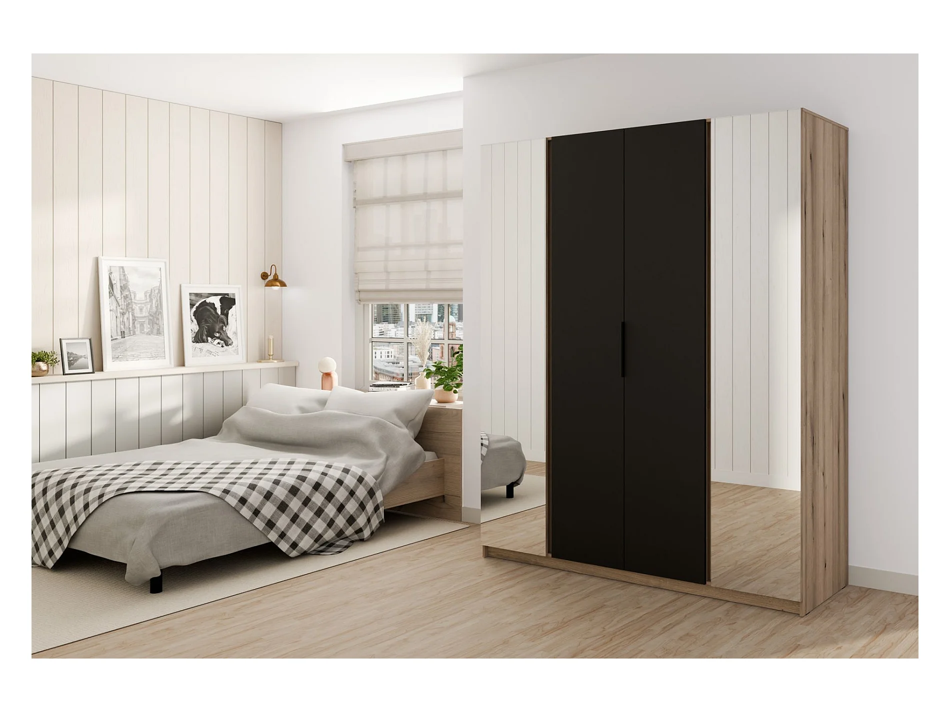 Armoire avec miroir et 3 tiroirs - 200 cm - noir / chêne evoke - KAJA