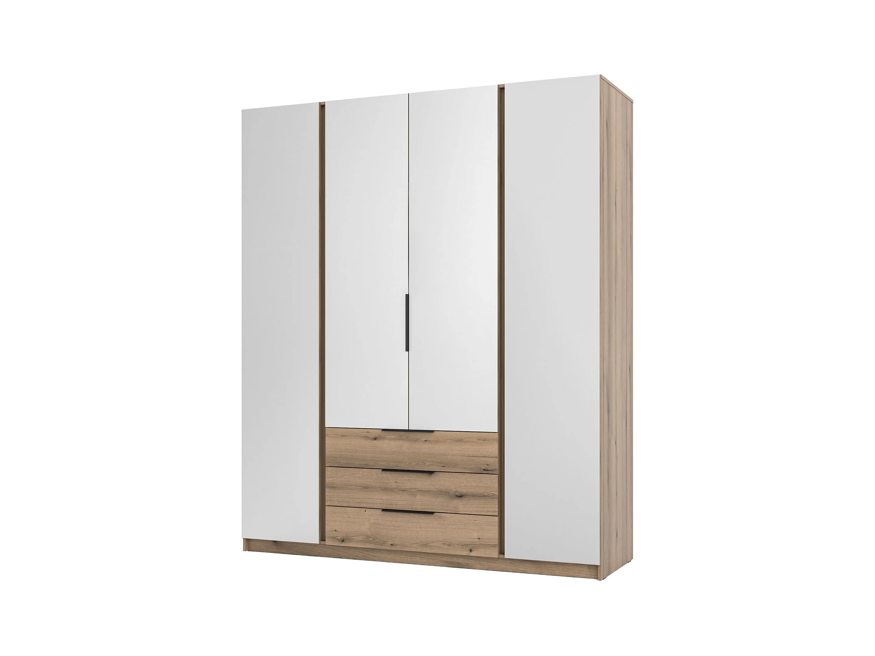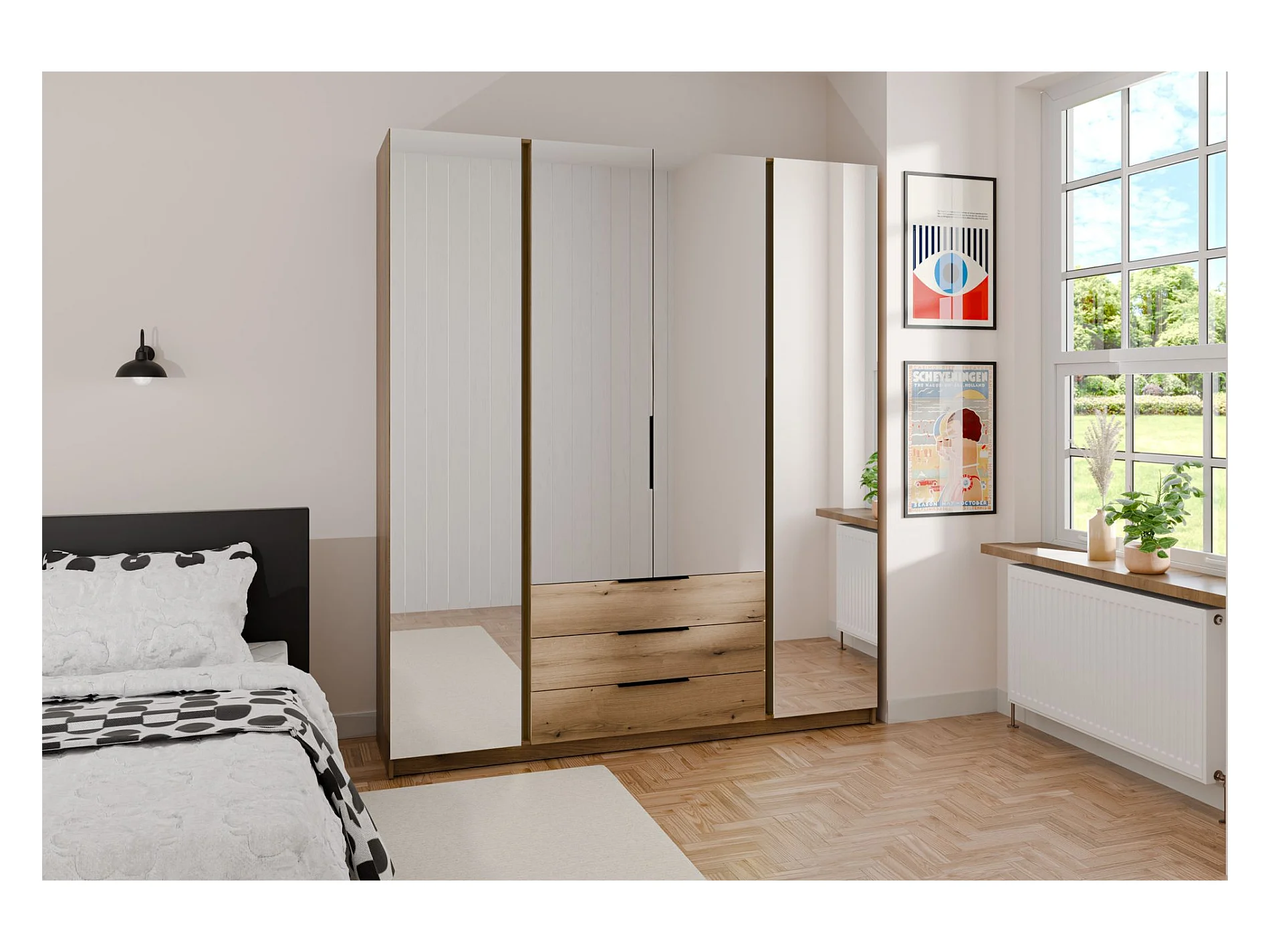Armoire 4 portes avec miroirs et 3 tiroirs - 200 cm - chêne evoke - KAJA