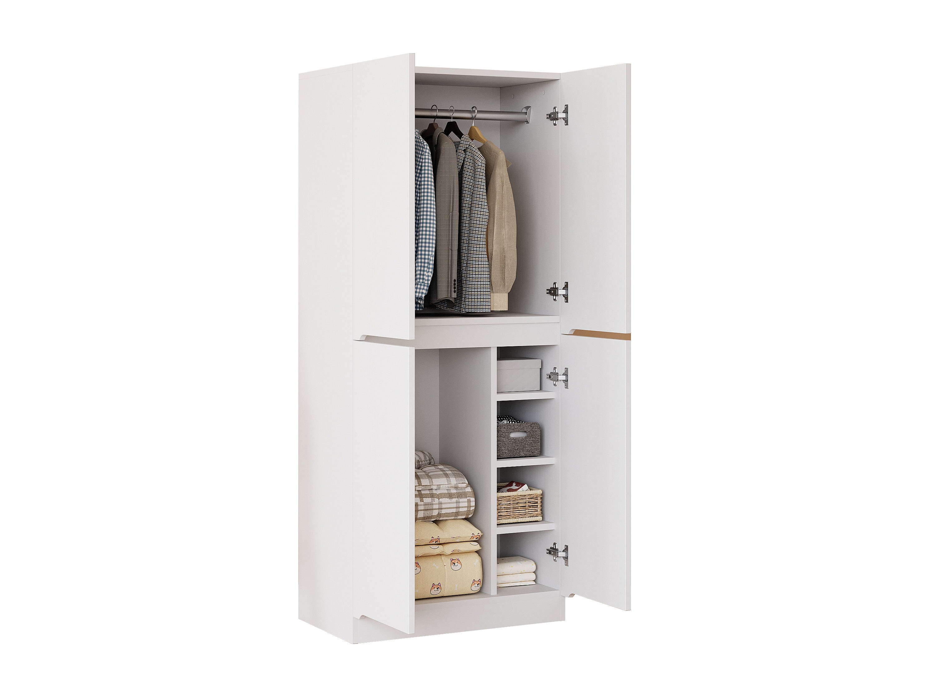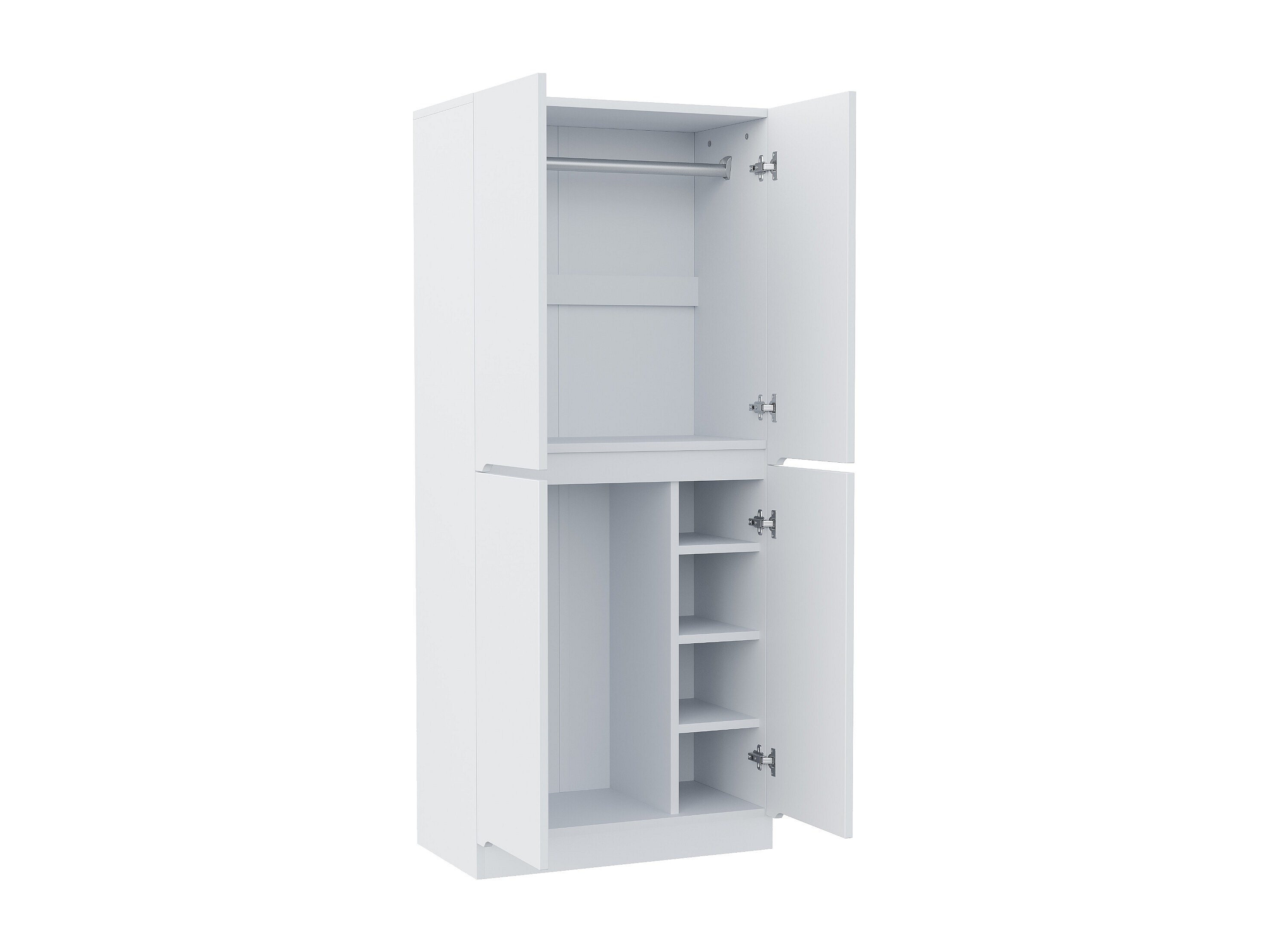 Armoire avec 4 tiroirs et compartiments de rangement - espace vêtements ouvert - bois - blanc