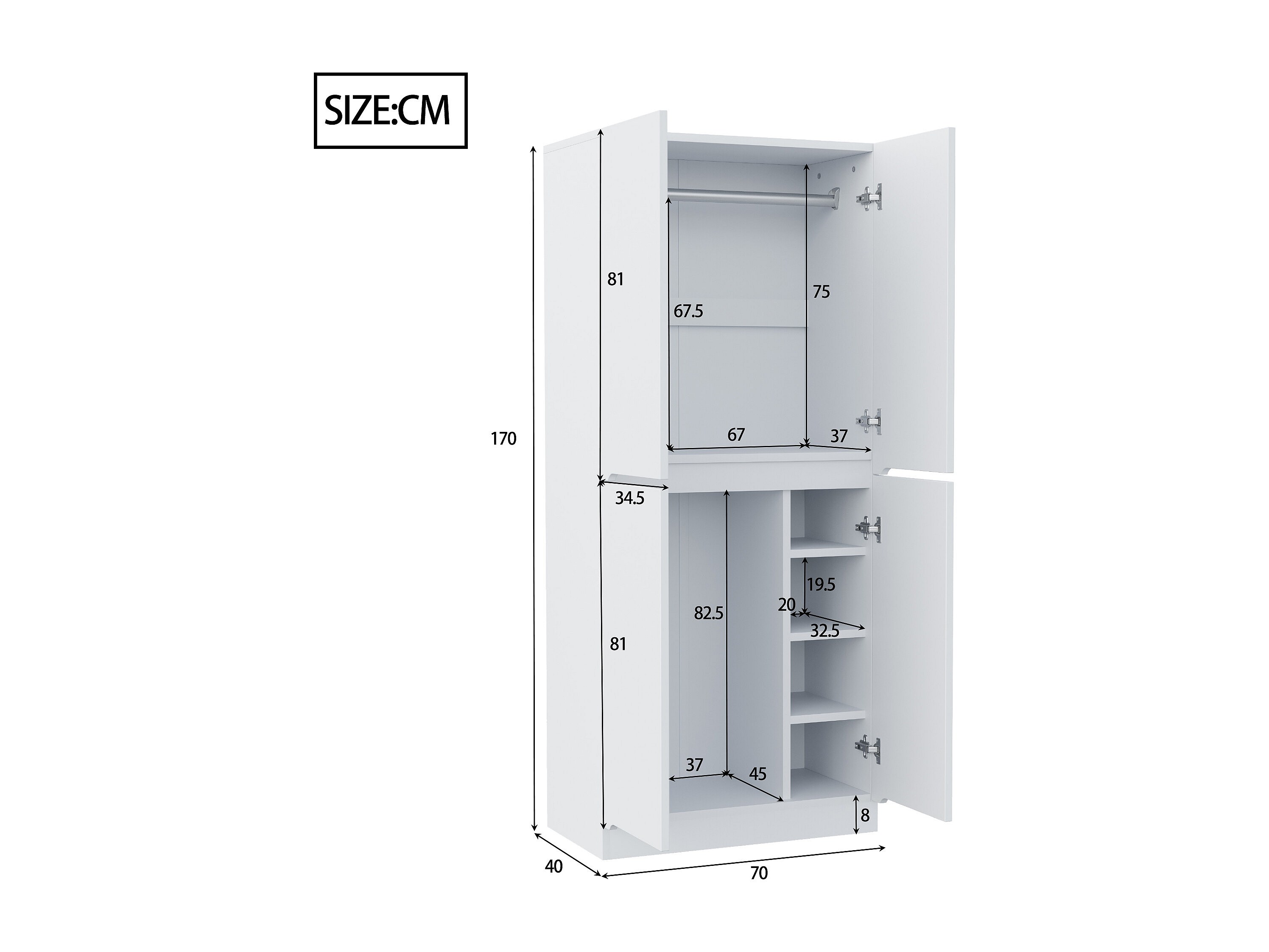 Armoire 70 x 40 x 170 cm - modèle à 2 portes avec compartiment de rangement - bois - blanc