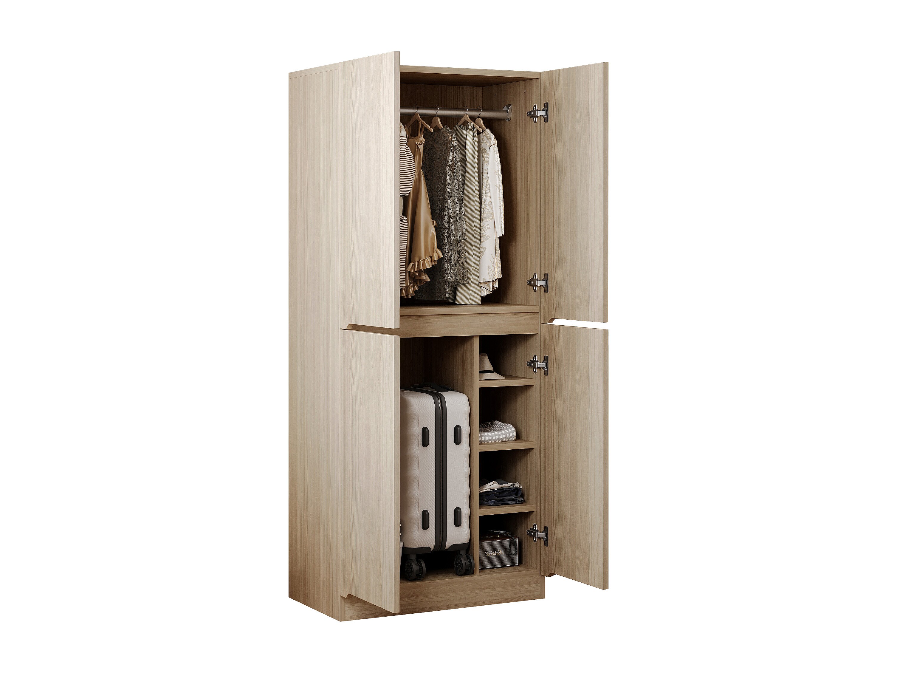 Armoire avec 4 tiroirs et compartiments de rangement - espace vêtements ouvert - bois - naturel