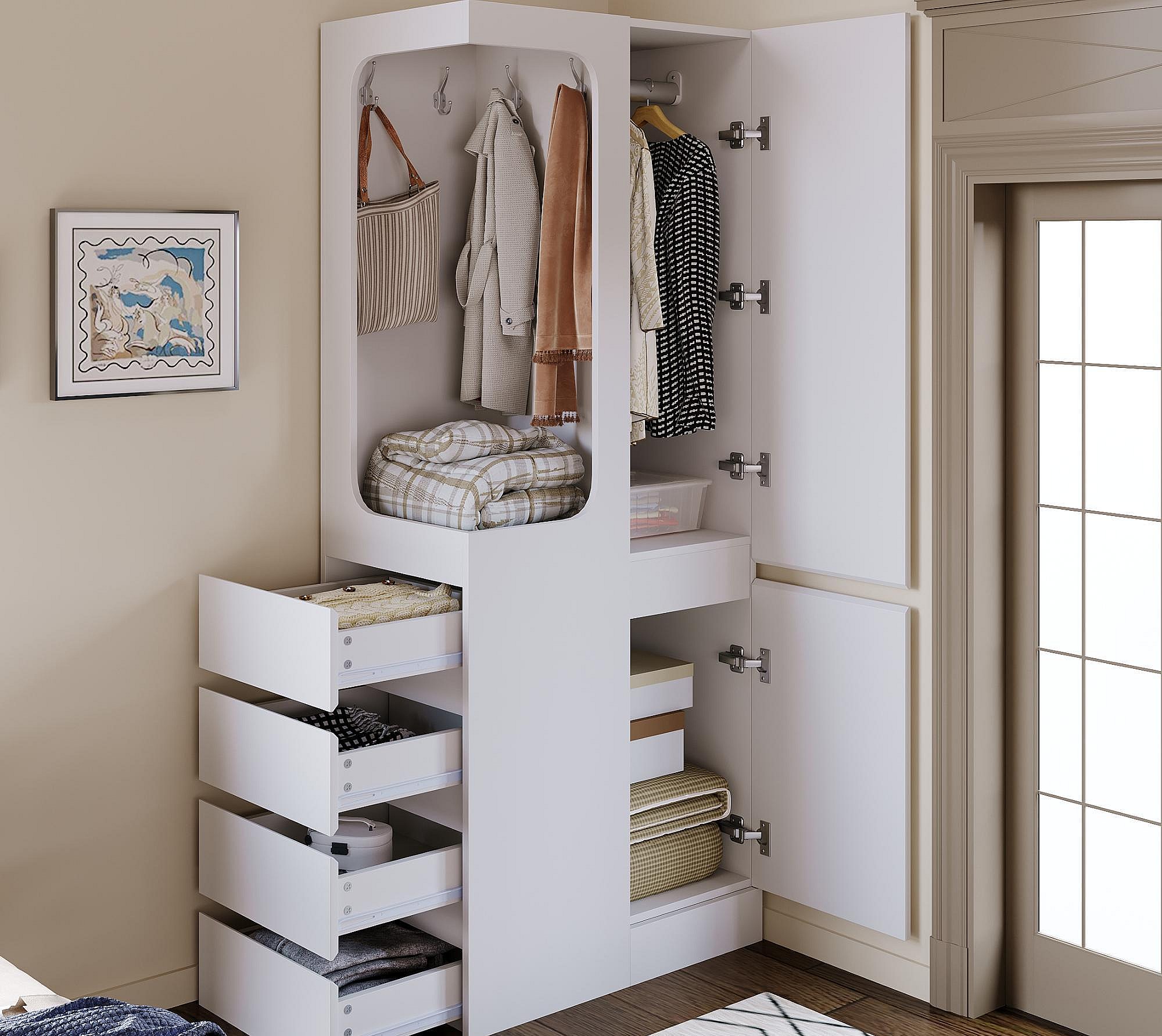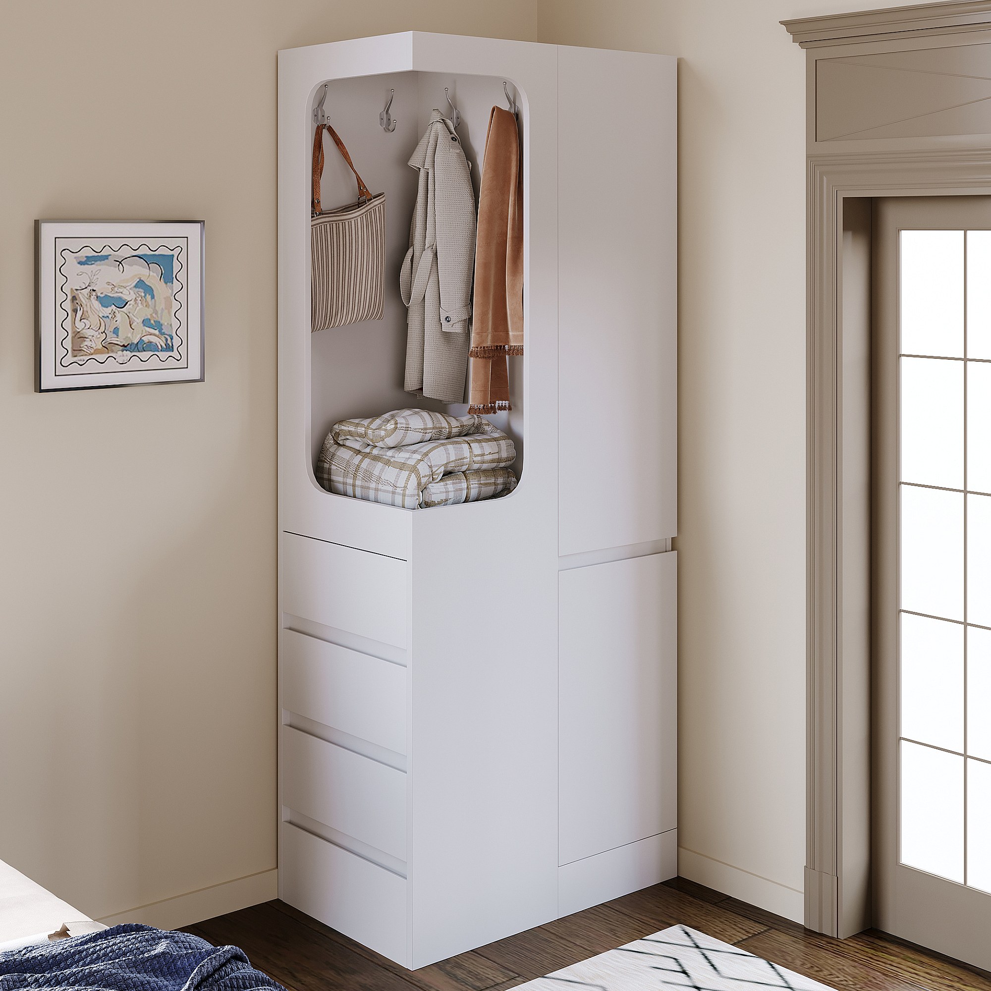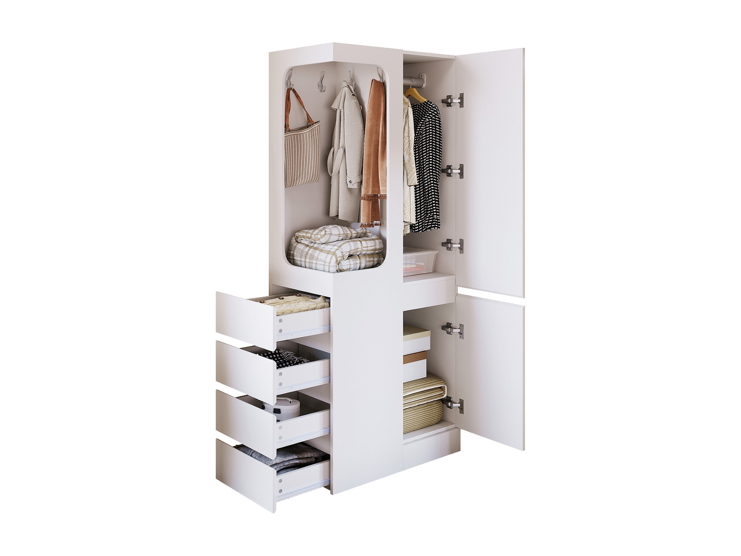 Armoire 70x40x170 cm - avec 4 tiroirs - avec 2 portes - avec compartiments de rangement - blanc