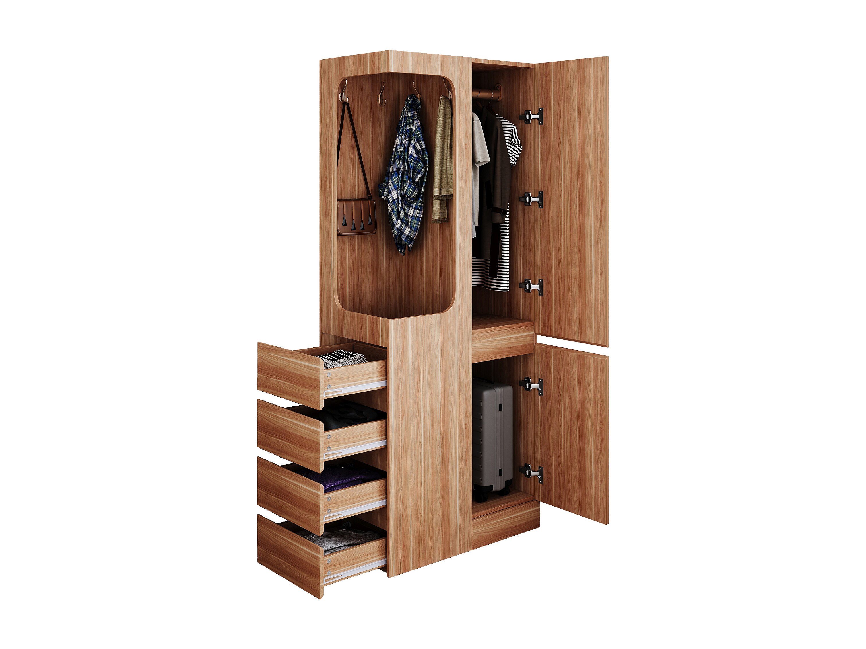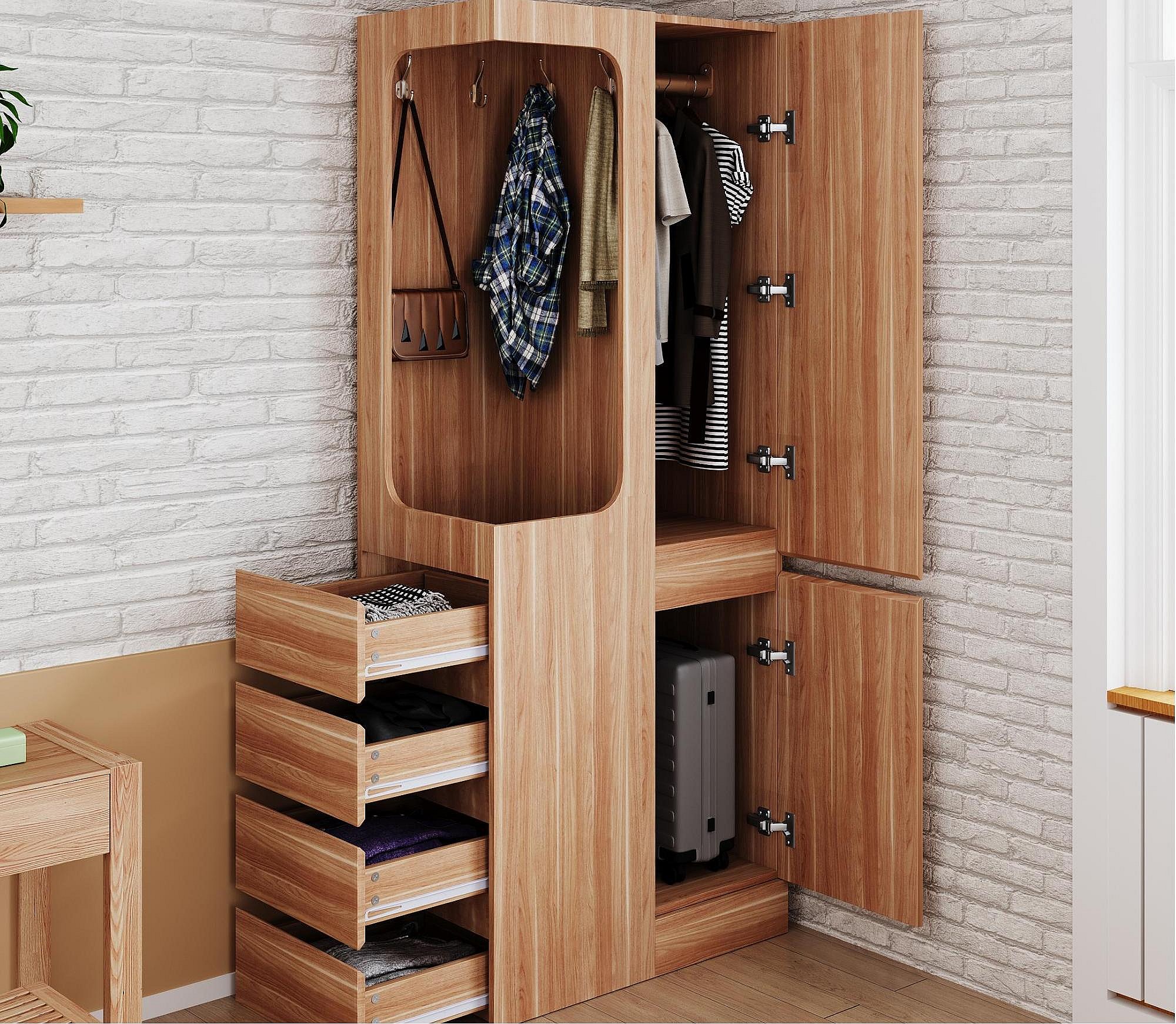 Armoire 70x40x170 cm - 4 portes - avec tige de séchage de vêtements - Naturel