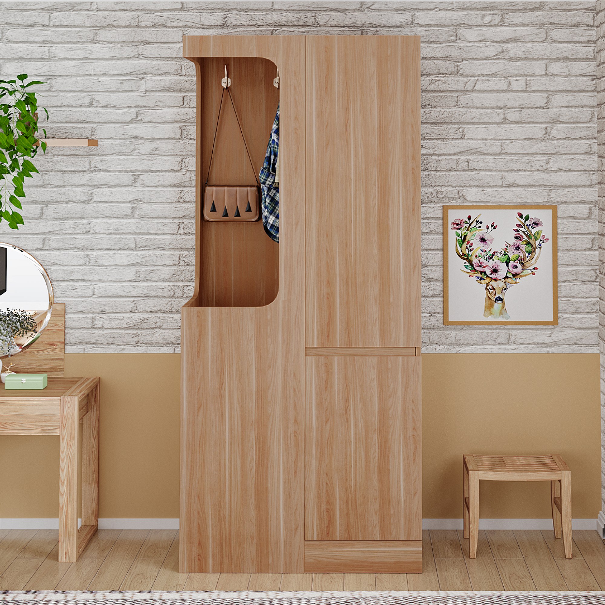 Armoire 70x40x170 cm - 2 portes & 2 tiroirs avec compartiments - Naturel