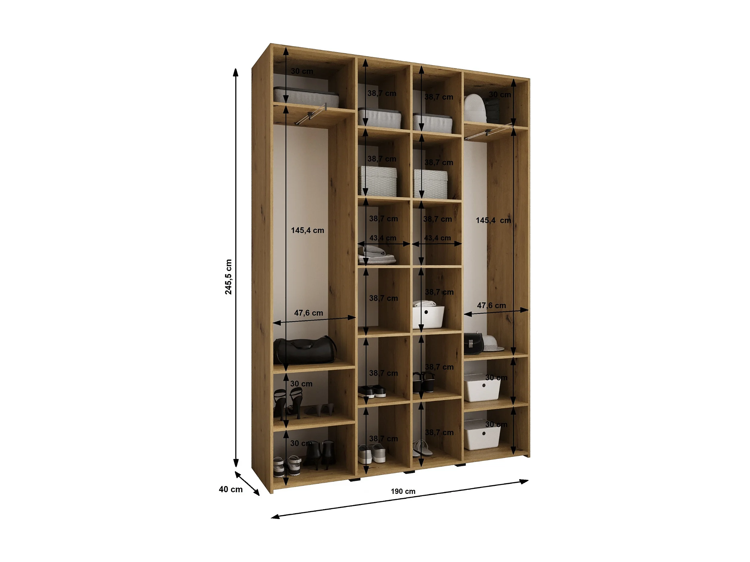 Armoire à portes battantes Como 4 245,5/190/40 4 portes (blanc/noir)