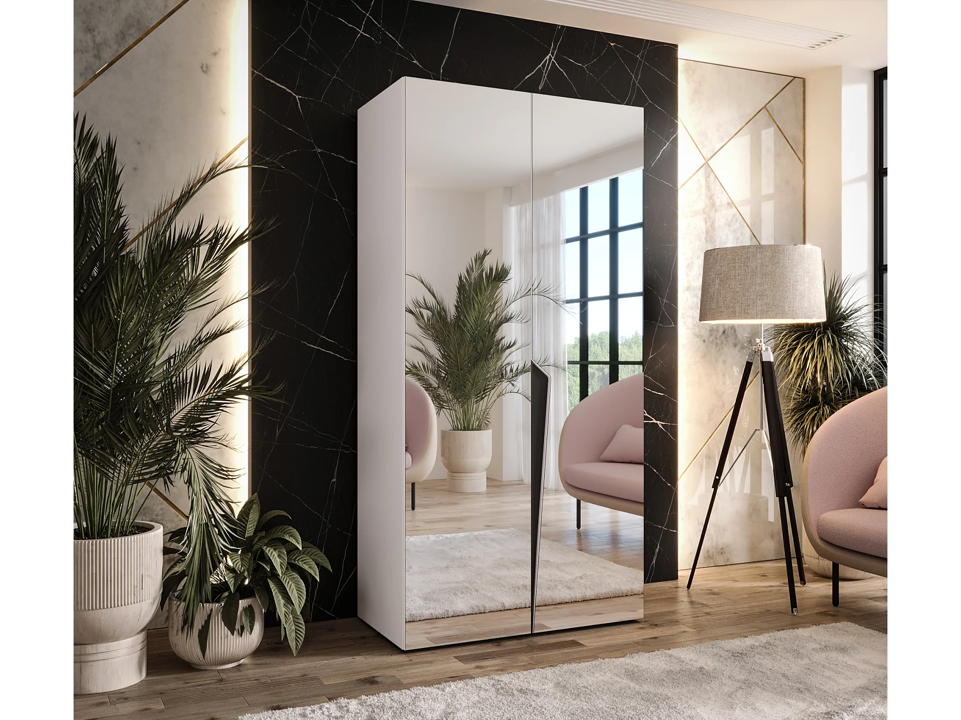 Armoire à portes battantes Piano 3 100 / 202 / 52 (Blanc + poignées: Noir)