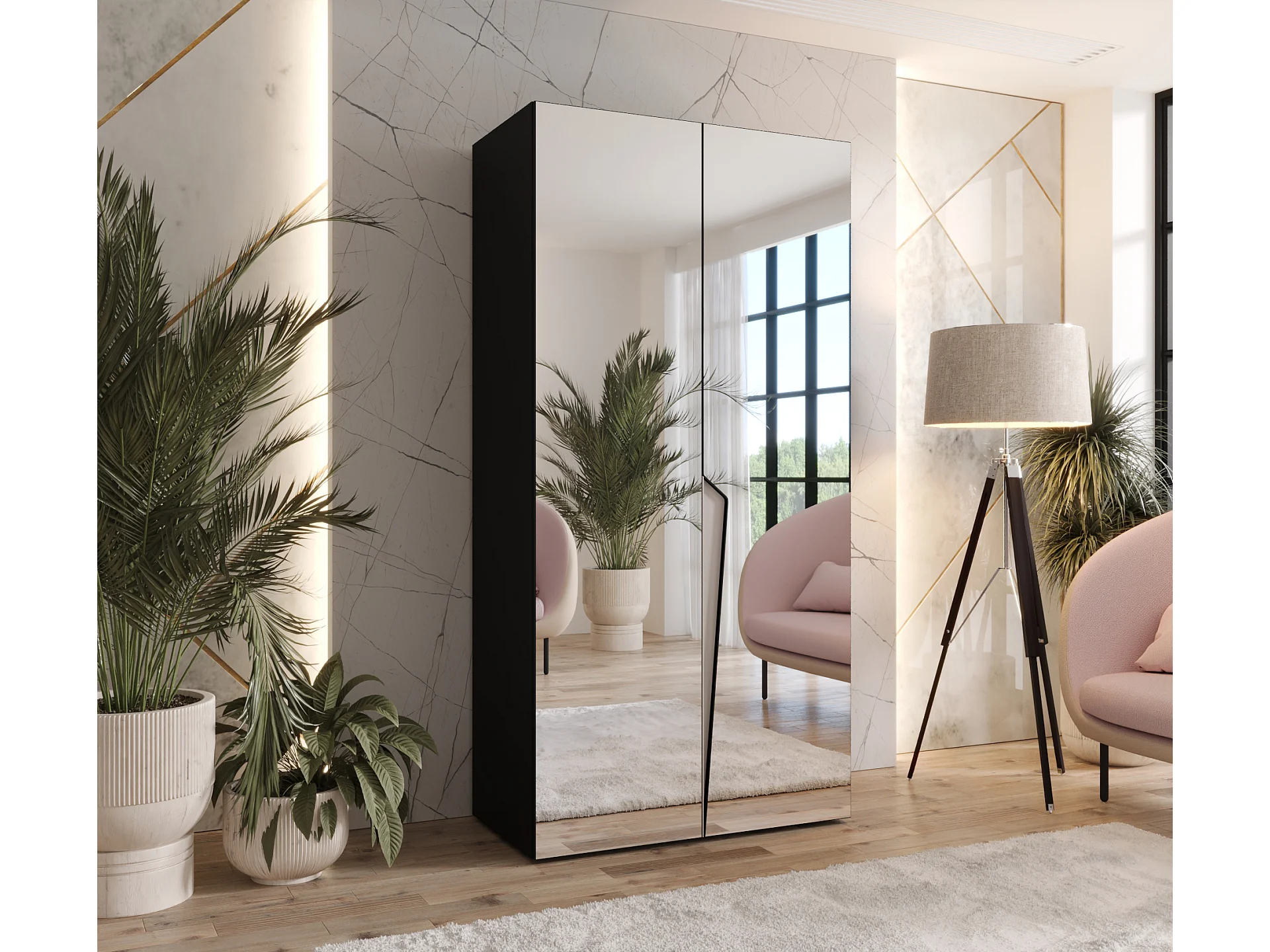 Armoire à portes battantes Piano 2 100 / 202 / 52 (Noir + poignées: Noir)