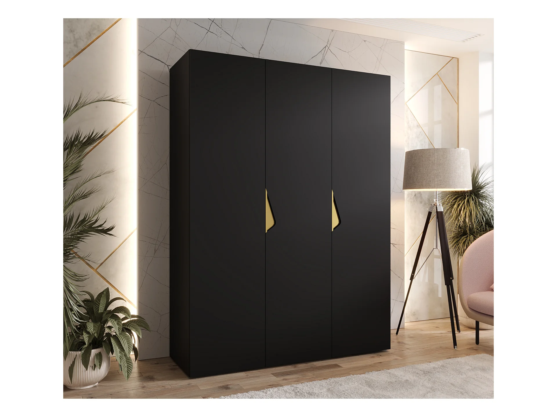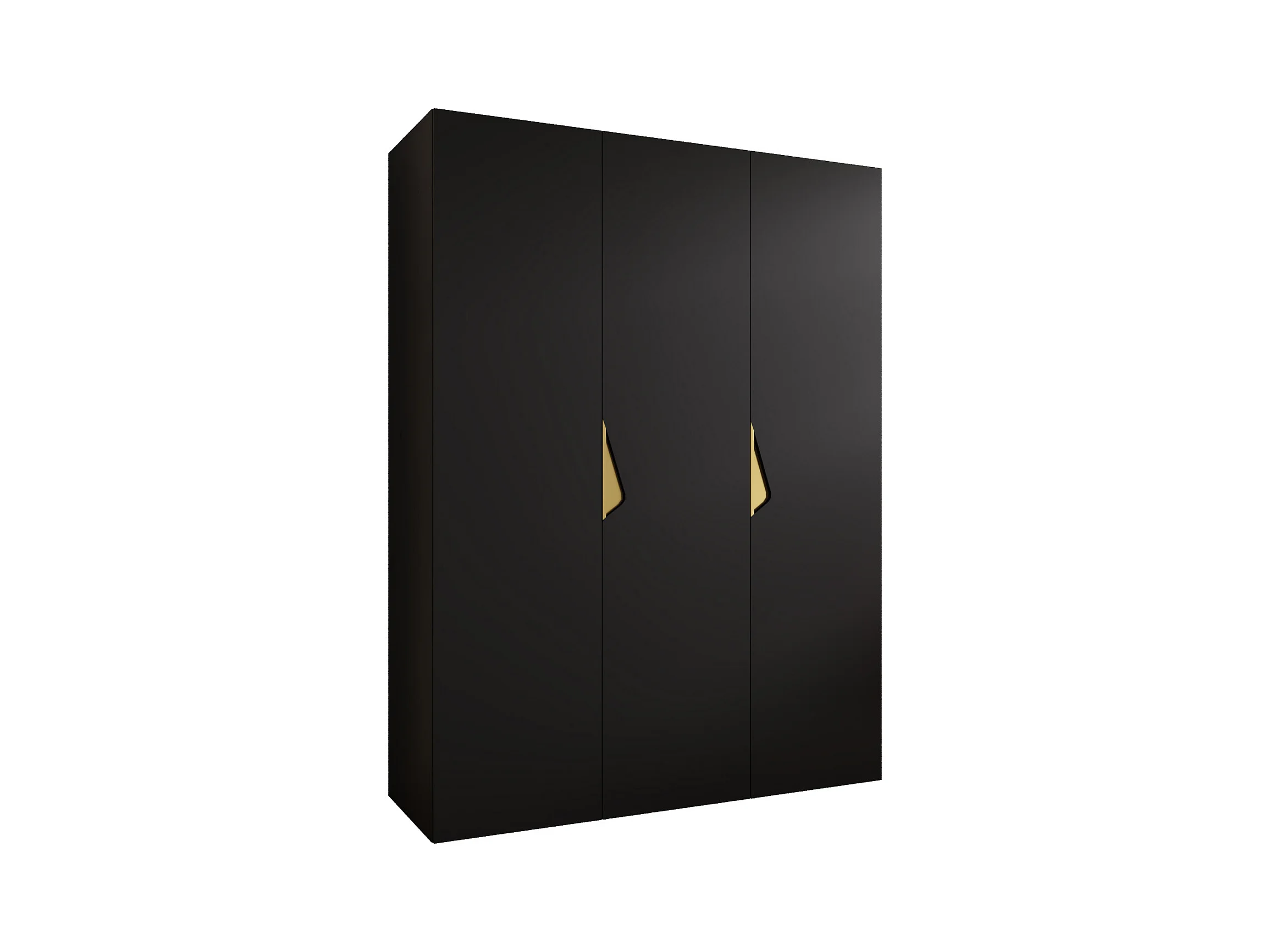 Armoire à portes battantes Sandi 3 150 / 202 / 52 (Noir + poignées: Gold)